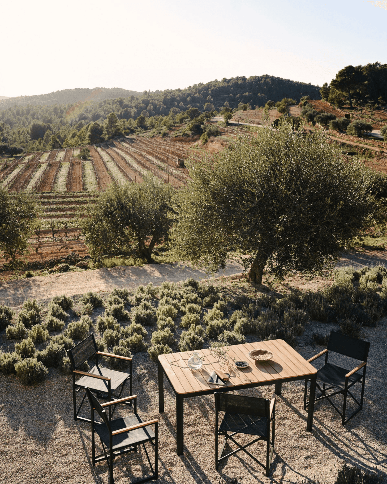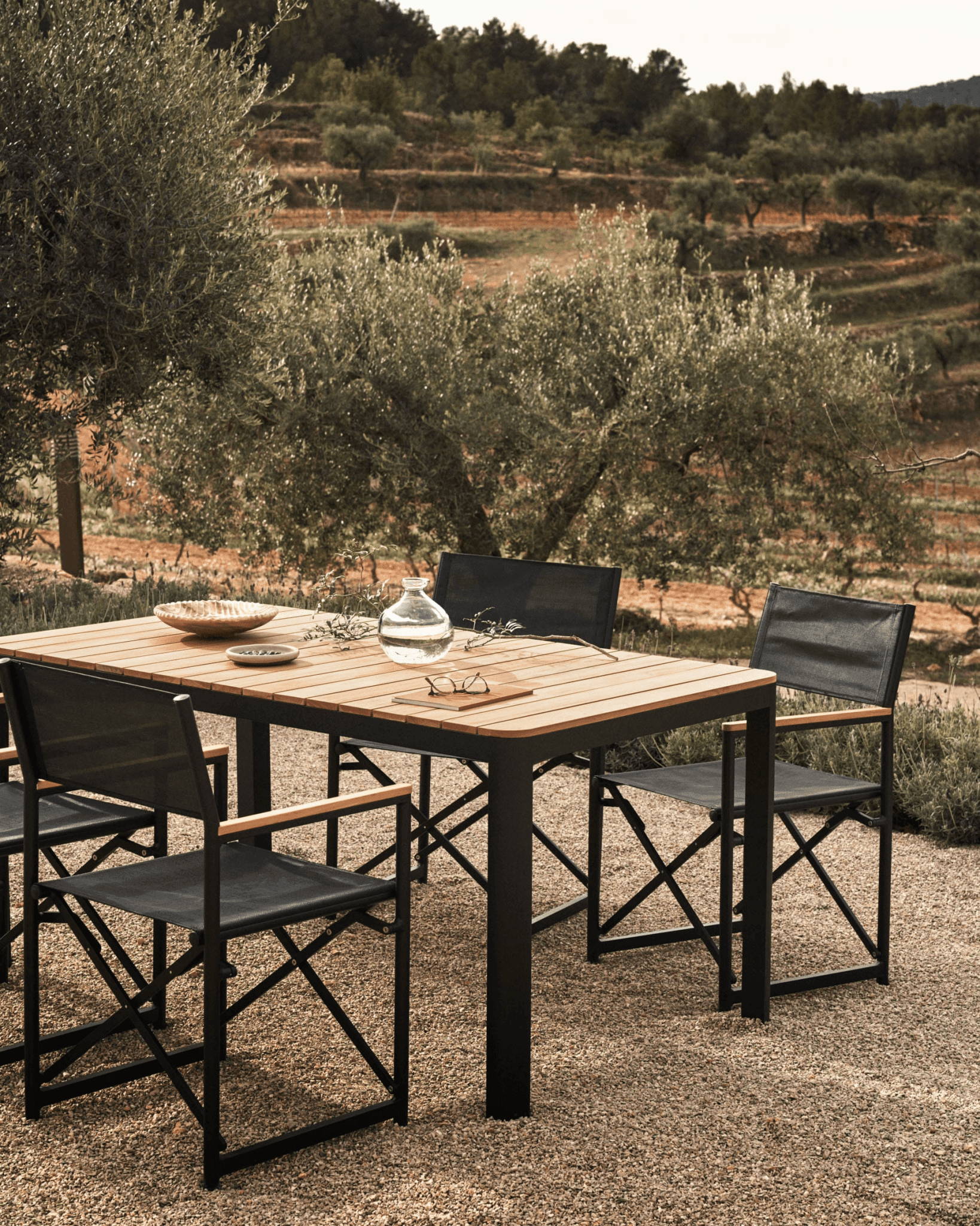Absolutnie filmowy fotel. W Llado ten klasyczny wzór został wykonany z aluminium, a podłokietniki z litego drewna tekowego. Jest odporny na promieniowanie UV i składany w celu zaoszczędzenia miejsca podczas przechowywania.