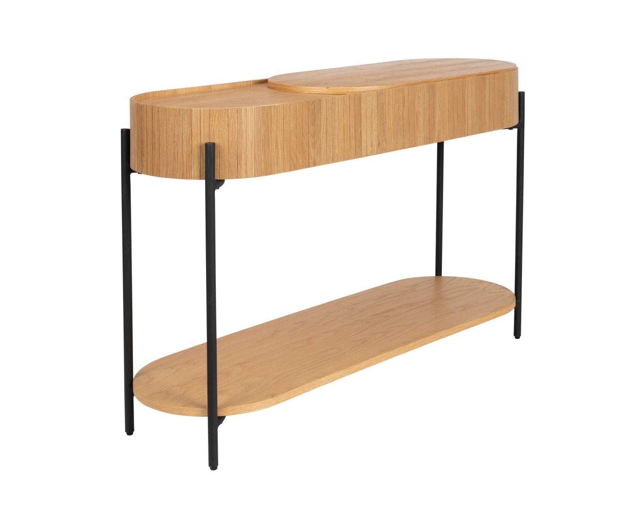 Ulepsz swoją przestrzeń życiową dzięki eleganckiej i wszechstronnej kolekcji Slides. Konsola Slides posiada pomysłowy przesuwany blat. Po przesunięciu blatu odsłania się przestronny ukryty schowek. Wykonana z wyjątkową dbałością o szczegóły, konsola łączy fornir dębowy z czarnymi, malowanymi proszkowo metalowymi nogami, tworząc harmonijne połączenie naturalnego piękna i nowoczesnego designu.