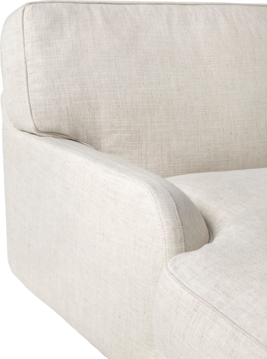 Sofa 2-osobowa Flaneur łączy ponadczasową elegancję z nowoczesnym komfortem. Charakterystyczne „roll arm” w tym wydaniu zostały uproszczone i wzbogacone o minimalistyczne linie, tworząc harmonijne połączenie klasyki i współczesności. Smukła drewniana rama na metalowych nogach oraz miękkie poduszki zapewniają idealne wsparcie zarówno do siedzenia, jak i wypoczynku w pozycji półleżącej. Starannie dobrana warstwa sprężyn, pianki i puchu gwarantuje wyjątkowy komfort i trwałość.