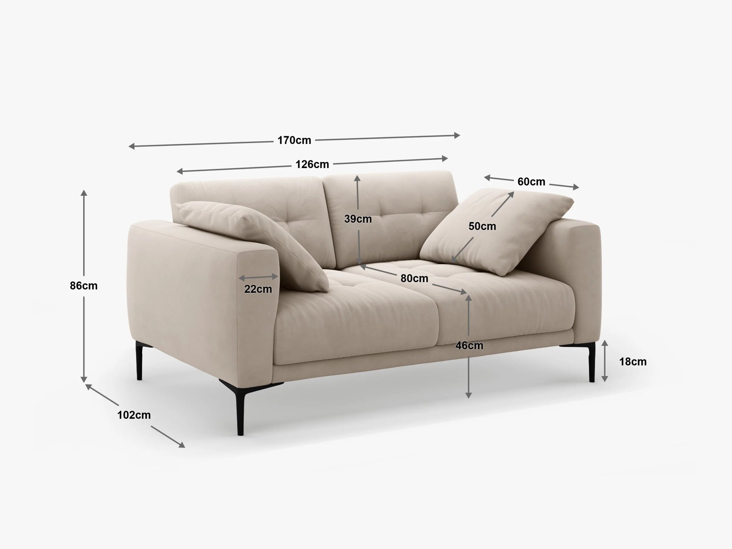 2-osobowa sofa Bemy to połączenie nowoczesnej elegancji i codziennego komfortu. Jej lekka, smukła sylwetka podparta wysokimi metalowymi nogami dodaje wnętrzu harmonii, a jednocześnie sprawia, że sofa wygląda wyjątkowo lekko wizualnie. To idealny wybór do salonu, domowego biura czy mniejszych przestrzeni, w których liczy się zarówno design, jak i wygoda.