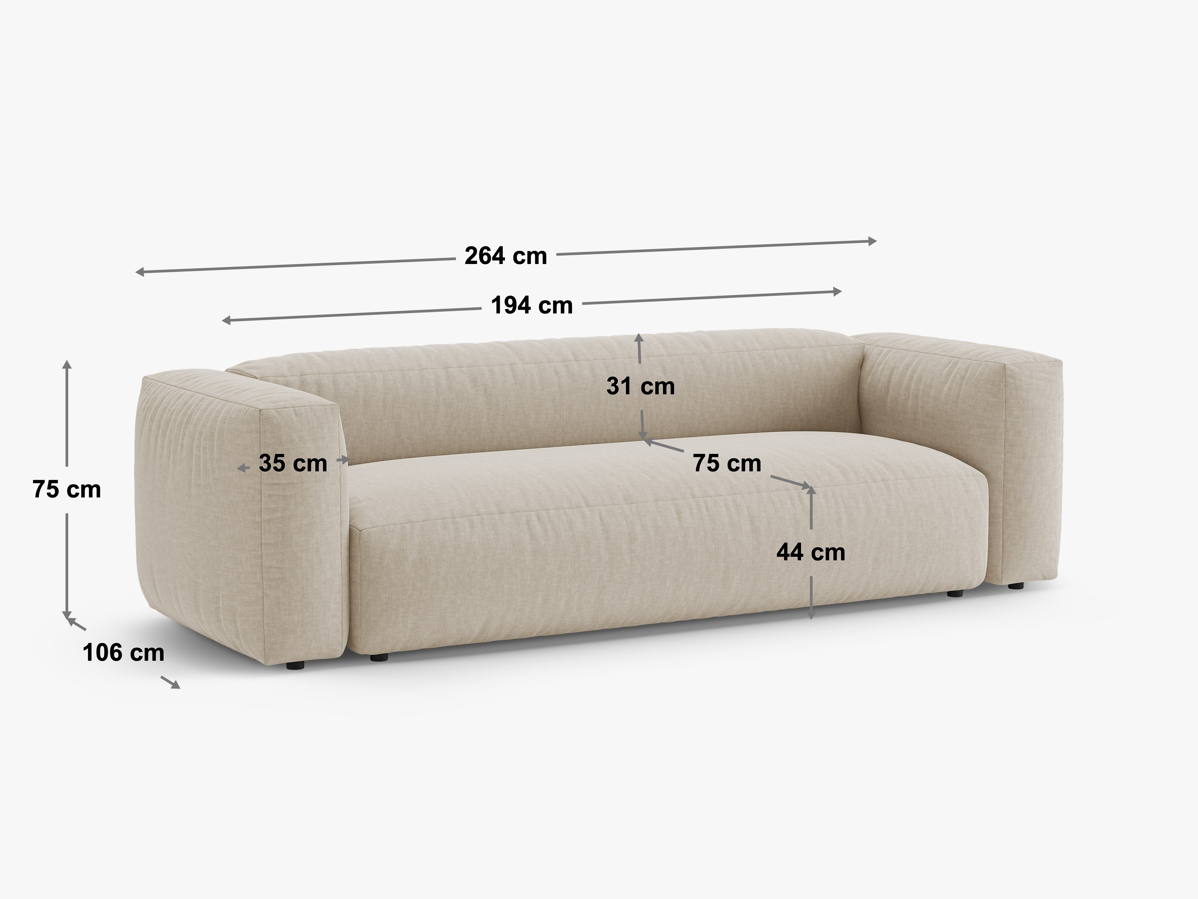 Głębokość siedziska: 75cm