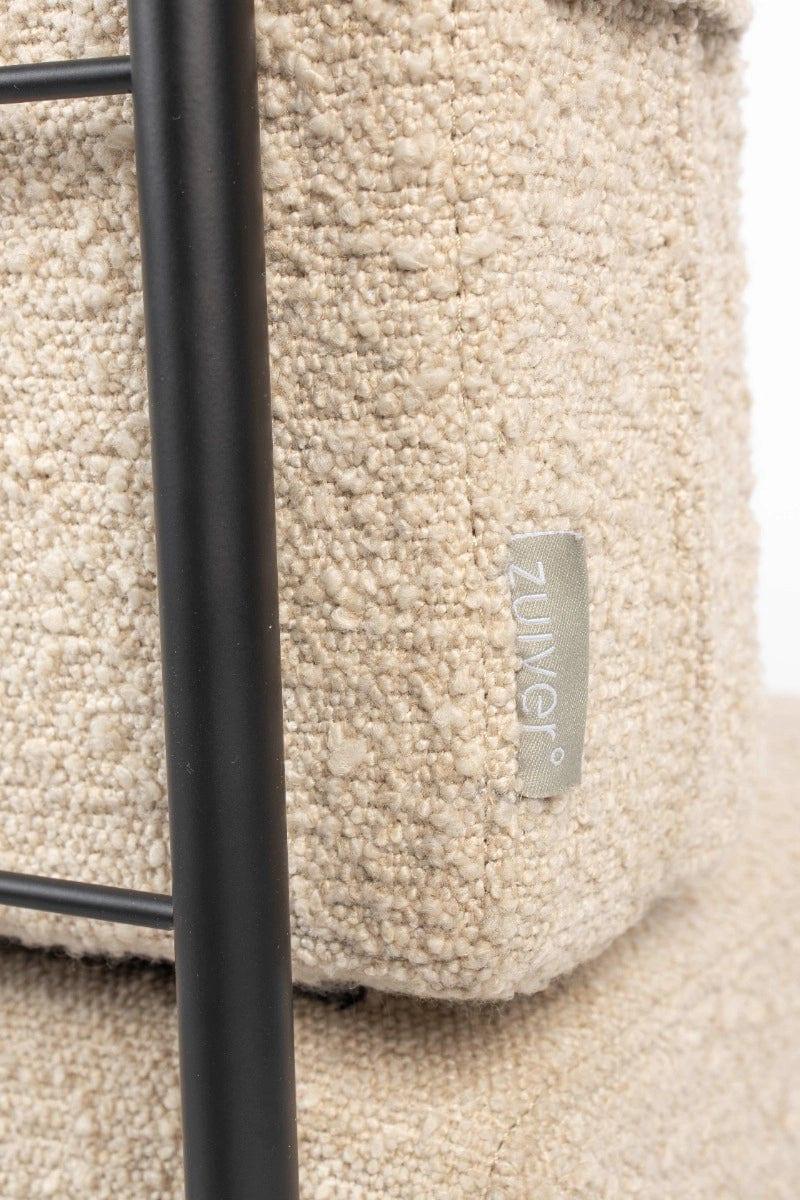 Stalowe nogi malowane proszkowo z plastikowymi ślizgaczami PE. Skorupa ze sklejki eukaliptusowej. Tapicerka z tkaniny mieszanej: 91% poliester, 19% akryl. Wypełnienie z pianki PU o gęstości 28-32.