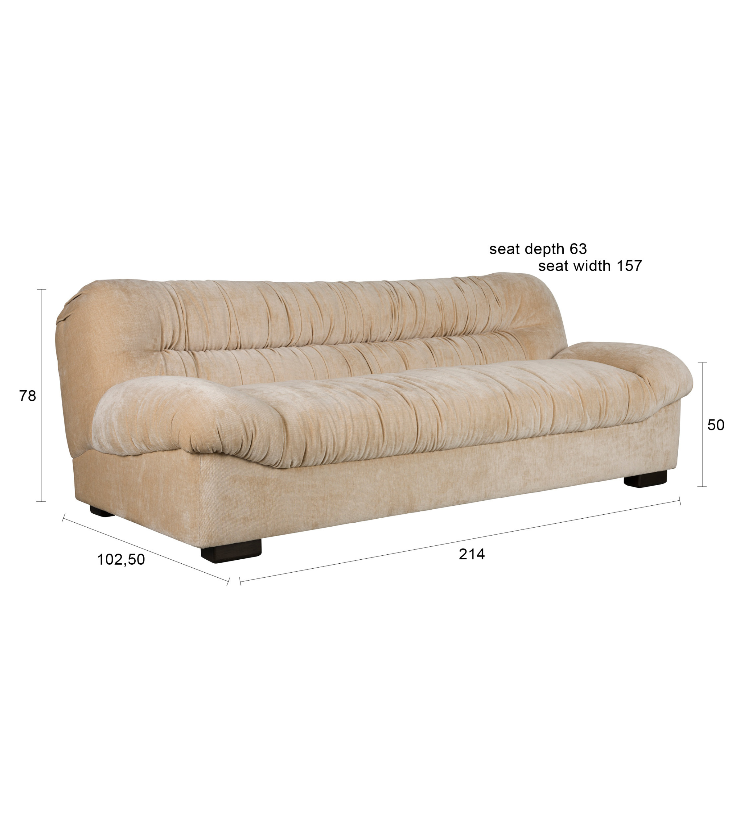Douglas to sofa, na której chce się przesiadywać godzinami. Jej obficie tapicerowane oparcie z dekoracyjnymi plisami i poziomym przeszyciem tworzy efekt przyciągający wzrok i budujący przytulną atmosferę. Zaokrąglone linie i miękka tkanina obiciowa w odcieniu brązu doskonale wpisują się w styl Mid Century Modern, nadając wnętrzu elegancji i ciepła.