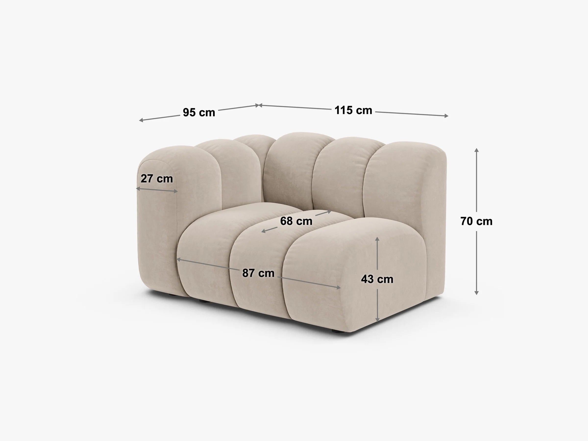 Niezależnie od tego, czy aranżujesz nowoczesną przestrzeń czy stawiasz na klasyczny glamour, ta sofa modułowa idealnie wpasuje się w Twoje potrzeby. Dzięki swojemu designerskiemu wyglądowi i wysokiej jakości wykonaniu, moduł Lupine stanie się centralnym punktem każdego pomieszczenia, nadając mu niepowtarzalnego charakteru i stylu.