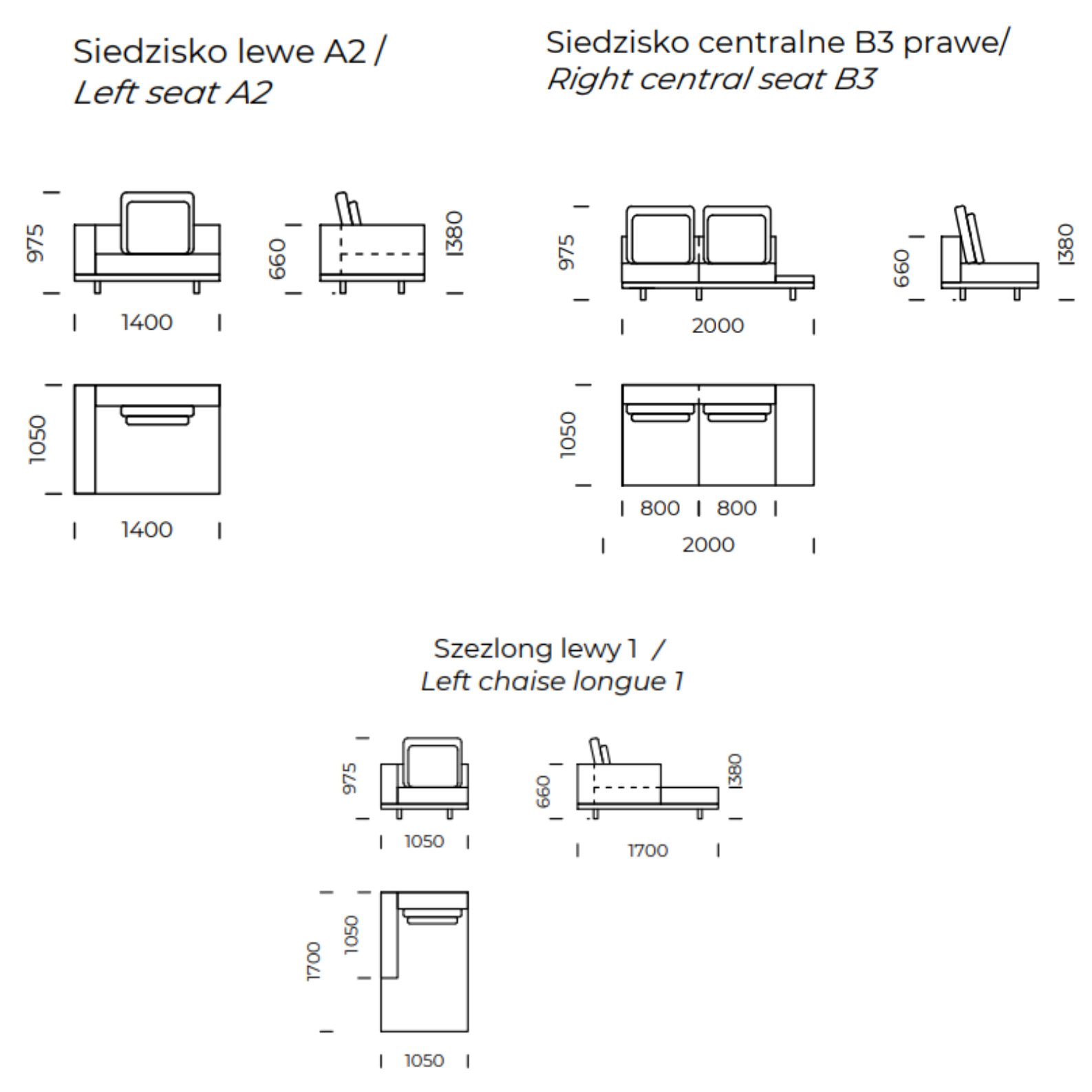 Sofa modułowa z półką CLASSIC czarna podstawa
