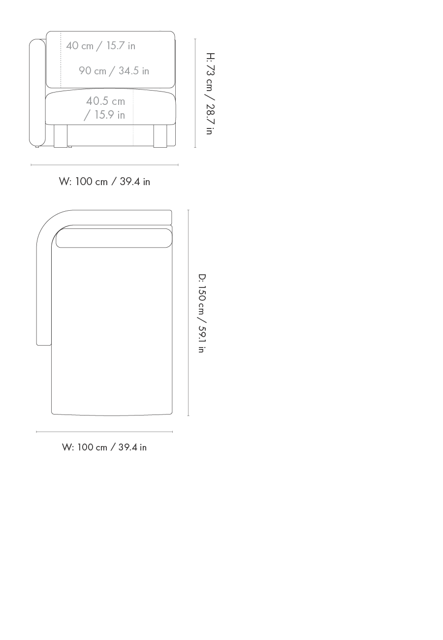 Materiał: Tkanina: Soft Bouclé. 90% poliester, 5% bawełna, 5% akrylowe włókna. Oparcie/siedzisko: Pianka PU i wata poliestrowa z wewnętrzną konstrukcją drewnianą. Nogi: Tapicerowana lita brzoza lub barwiony na ciemno lity dąb. Drewno z certyfikatem FSC™ Mix