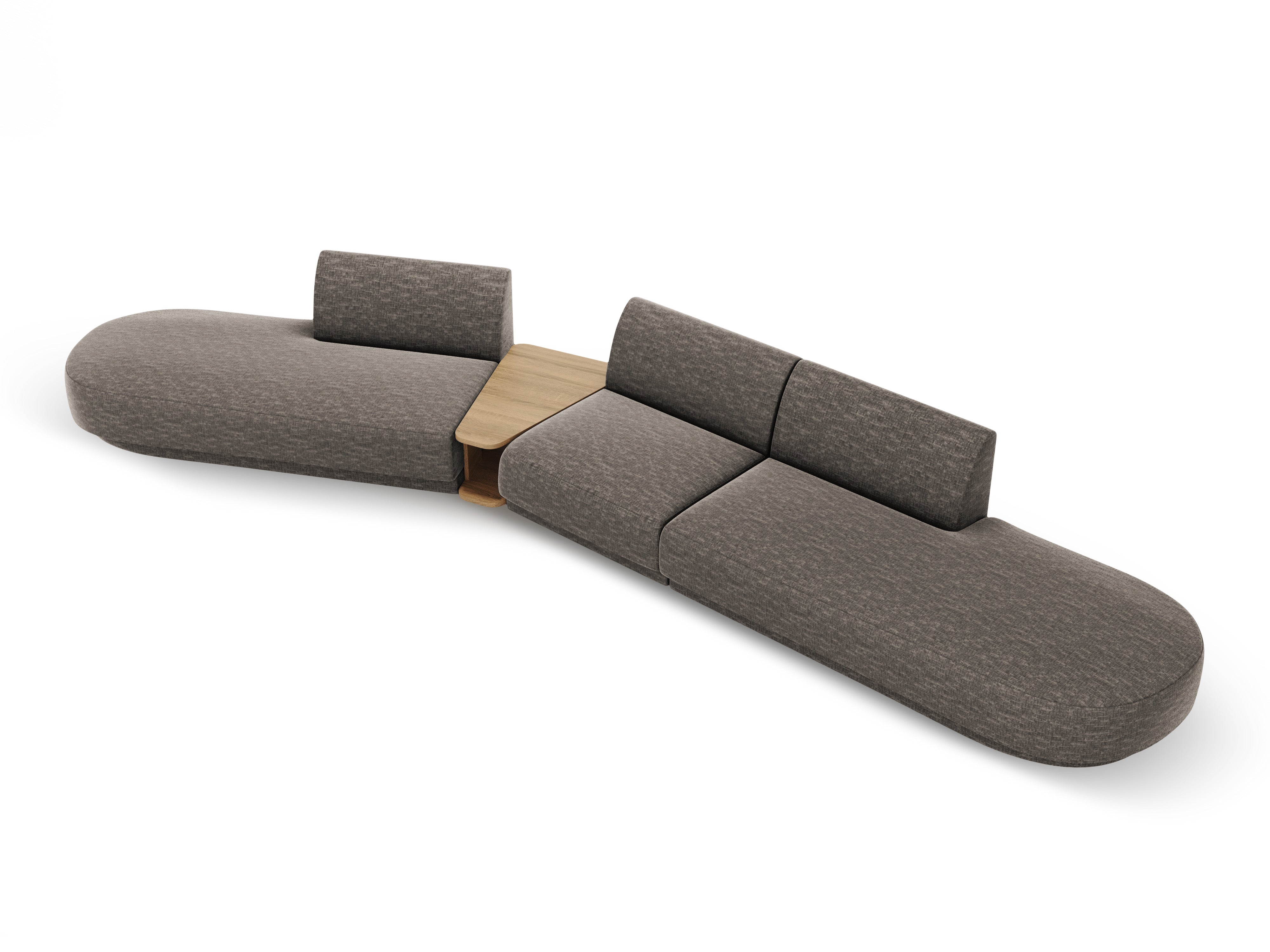 Sofa modułowa lewostronna ze stolikiem 5-osobowa MILEY szary szenil jedwabisty