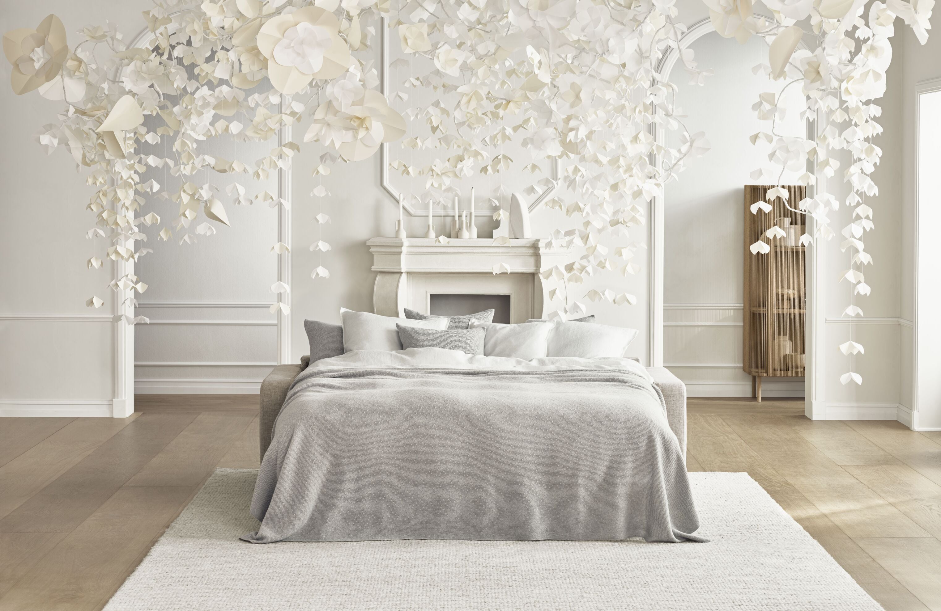 Konstrukcja wnętrza wykonana jest z drewna z certyfikatem FSC®, co gwarantuje trwałość i zrównoważone podejście do produkcji. Mechanizm rozkładania należy do najlepszych na rynku, zapewniając łatwość użytkowania i niezawodność. Sofa dostępna jest z gładko tkaną tapicerką o trwałej strukturze, która harmonijnie wpasowuje się w każdą przestrzeń, podkreślając subtelne linie i kształty mebla.