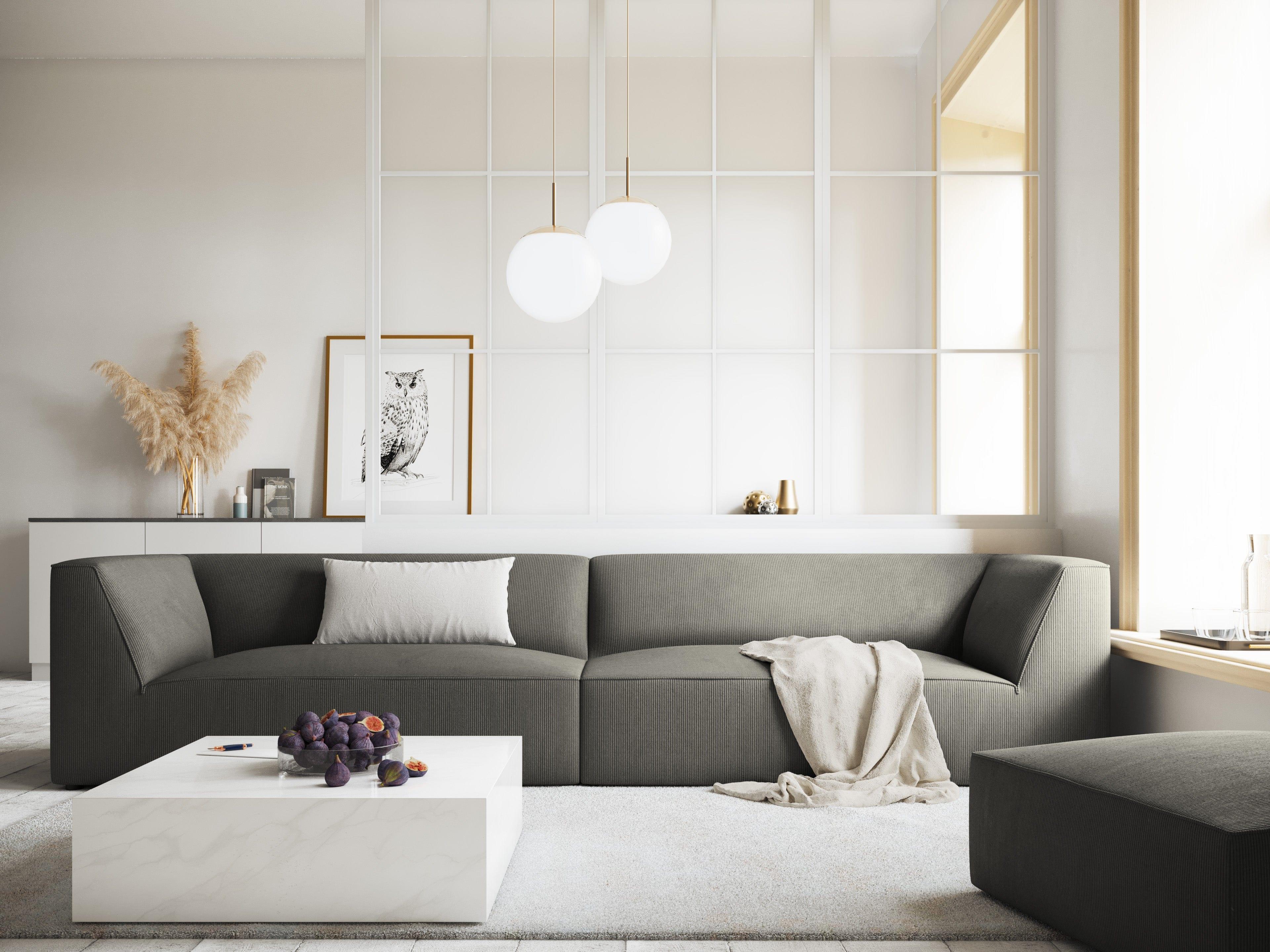 Niskie, czarne nóżki podkreślają nowoczesny, a zarazem wyważony kształt mebla. Uwagę przyciąga również tapicerka wykonana jest z modnego sztruksu. Ruby idealnie odnajdzie się w minimalistycznych i eleganckich wnętrzach. Będzie doskonałym miejscem do relaksu po ciężkim dniu lub do odpoczynku podczas leniwych wieczorów z ulubioną książką.