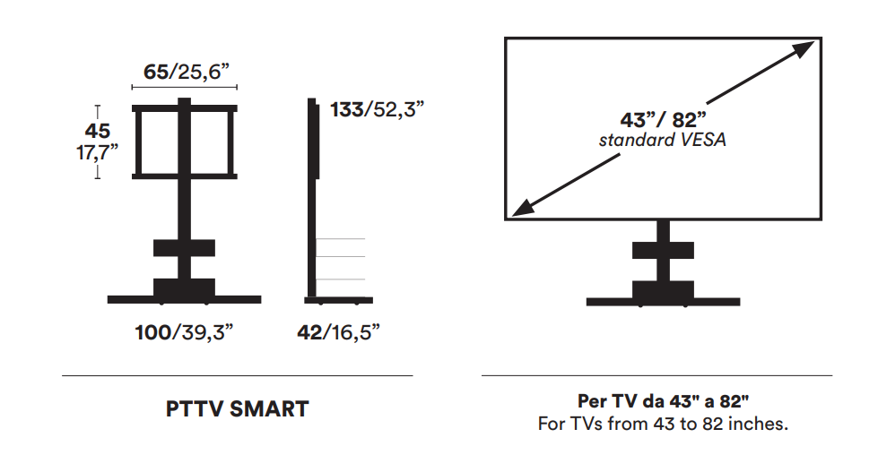 Dzięki kółkom obrotowym Ptolomeo TV Smart jest mobilny i łatwo dostosowuje się do układu wnętrza. Minimalistyczna forma i precyzja wykonania sprawiają, że idealnie komponuje się zarówno w nowoczesnych salonach, jak i przestrzeniach biurowych czy hotelowych.