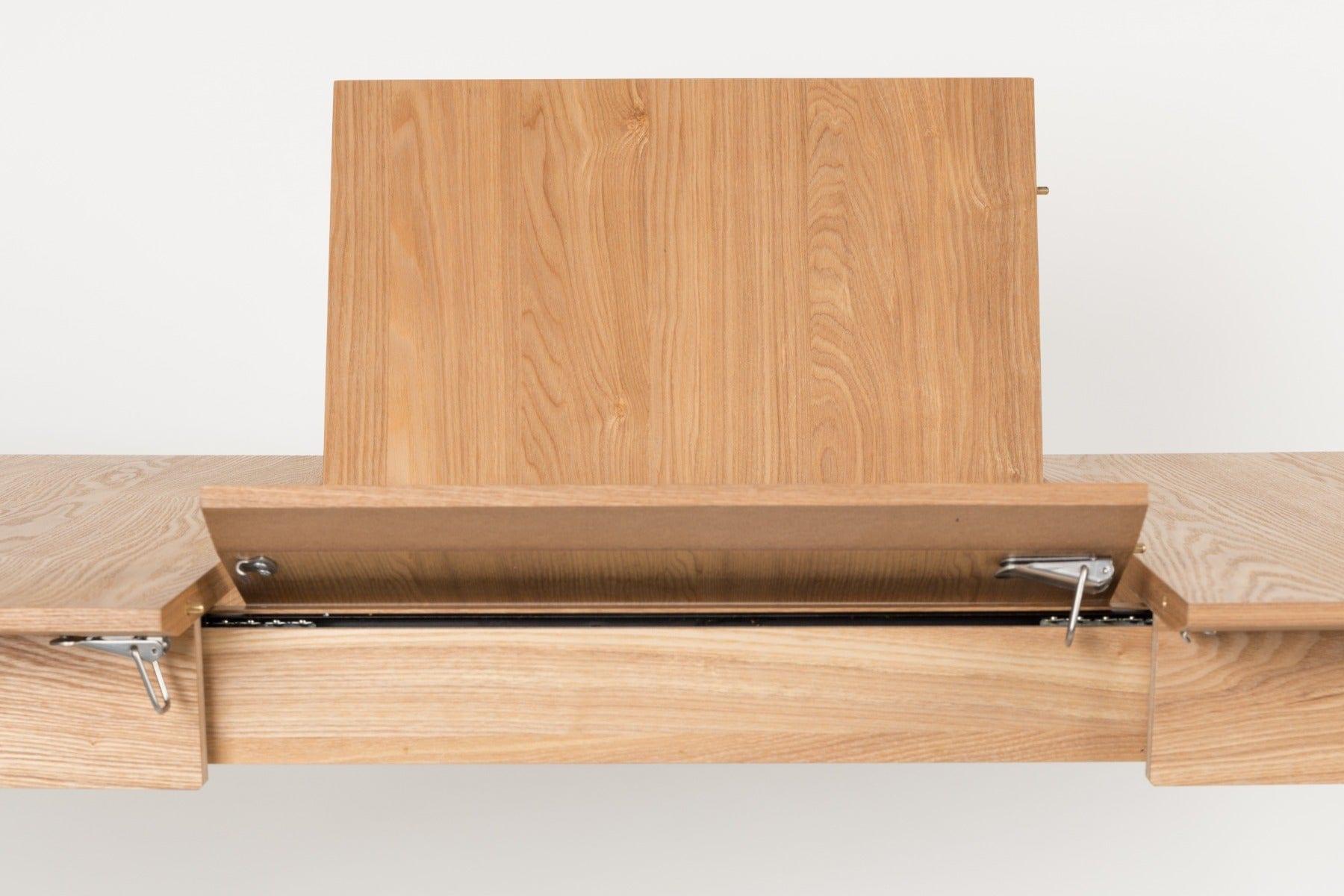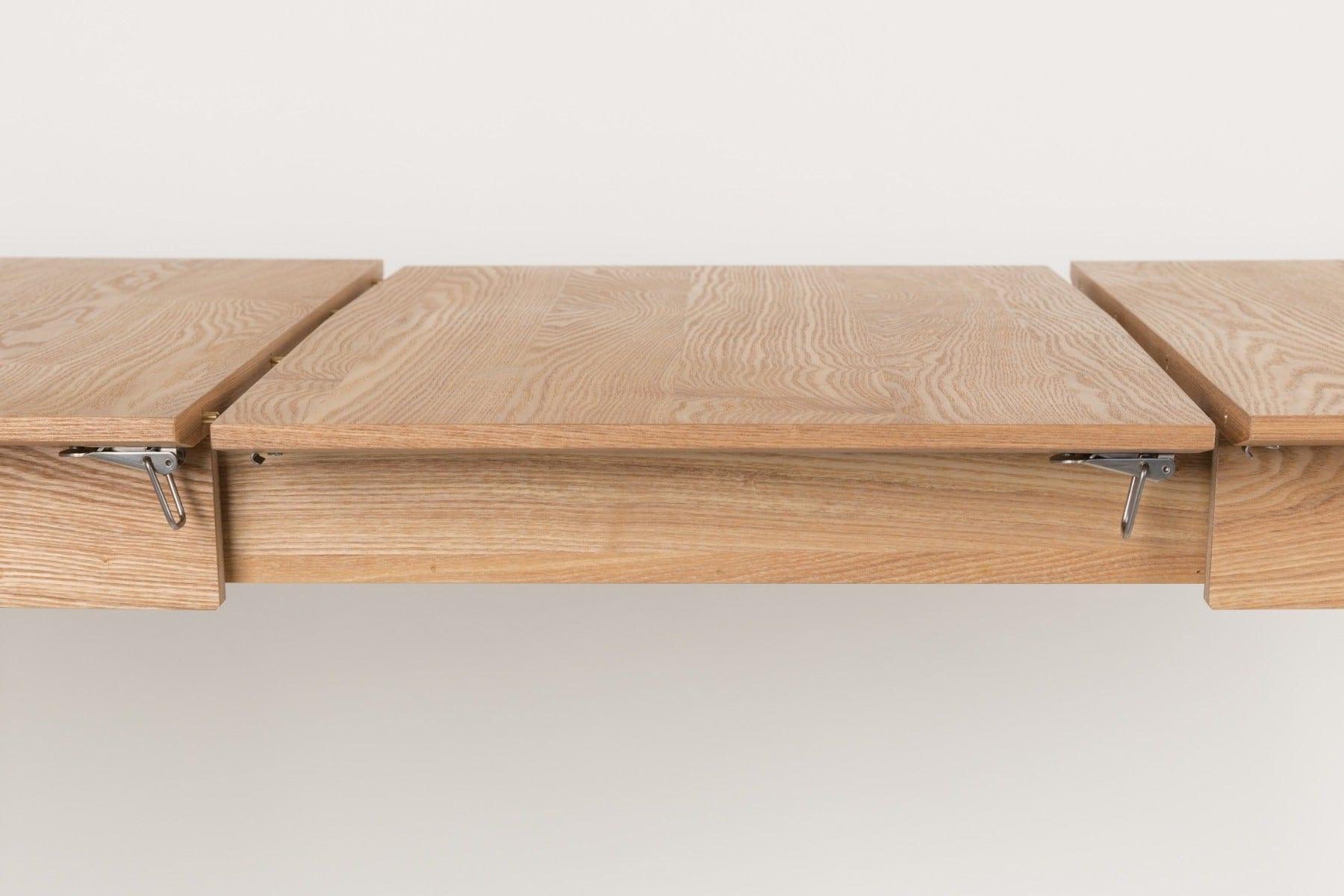 Jesionowy stół Glimps to świetne rozwiązanie do każdego mieszkania, w którym na co dzień nie potrzeba zbyt dużo miejsca podczas posiłków, ale zdarzają się takie okazje, kiedy jest to potrzebne. Łatwo to osiągnąć poprzez możliwość rozłożenia.