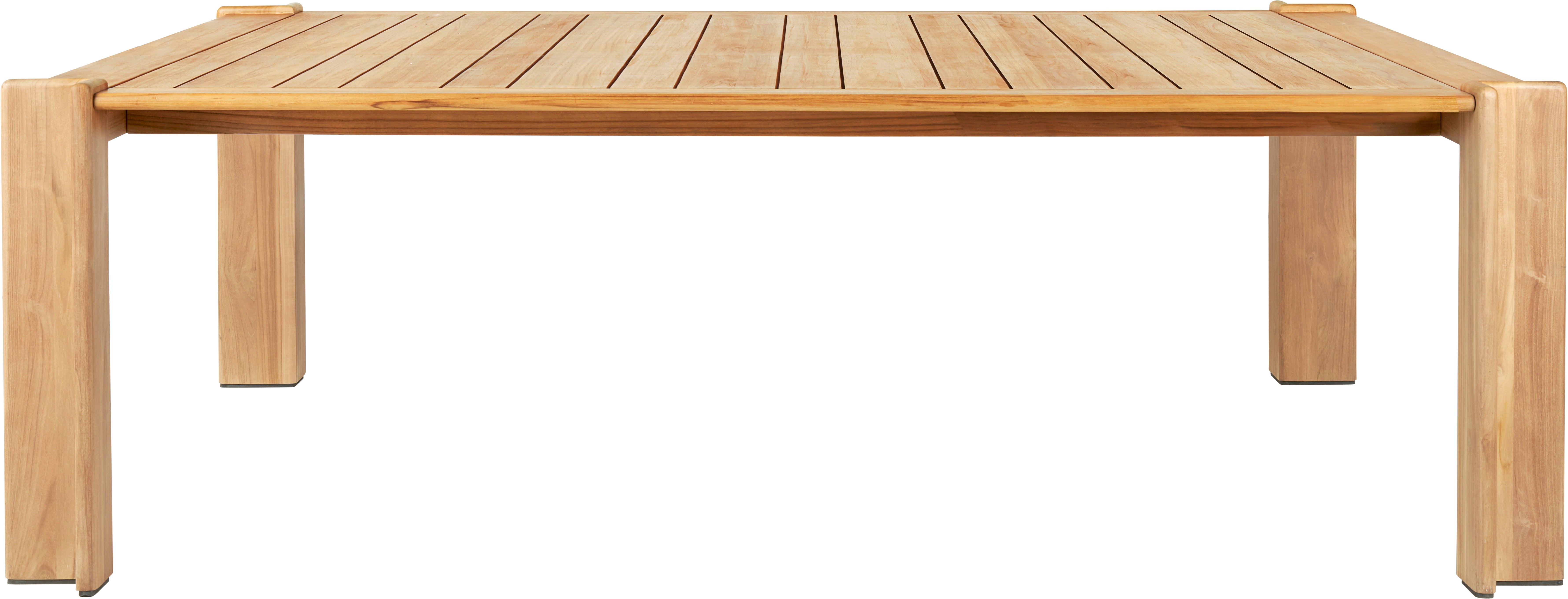 Stół ogrodowy Atmosfera to połączenie prostoty, elegancji i doskonałego rzemiosła. Wykonany z litego drewna tekowego o naturalnym wykończeniu, zachwyca powtarzalnym układem listew, które nadają mu lekkości i rytmicznej harmonii. Charakterystyczne nogi w kształcie odwróconej litery L przywołują skojarzenia z architekturą i wzornictwem marynistycznym, a ich delikatnie zaokrąglone zakończenia tworzą subtelny kontrast z geometryczną bryłą blatu.