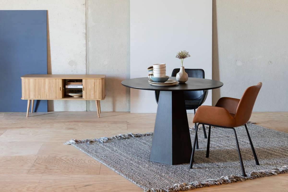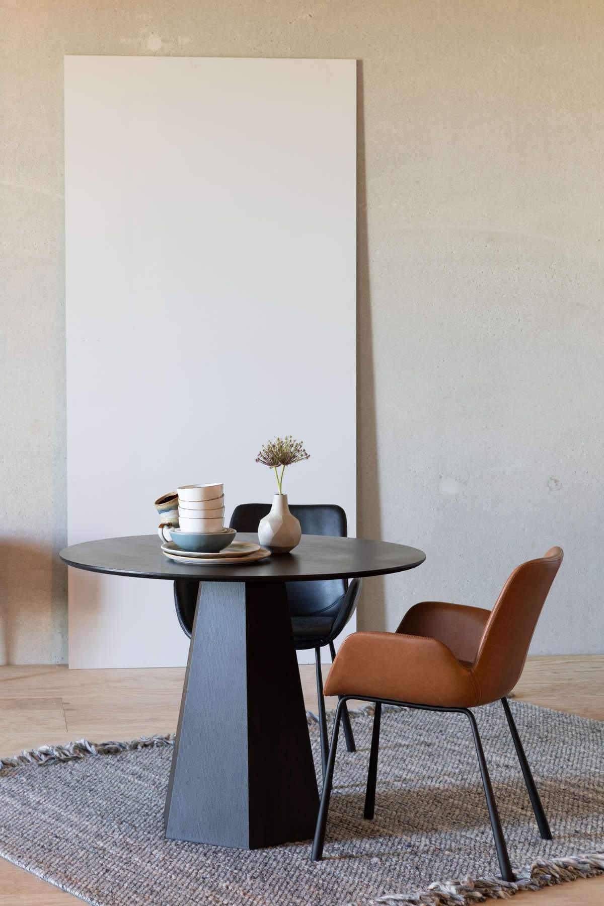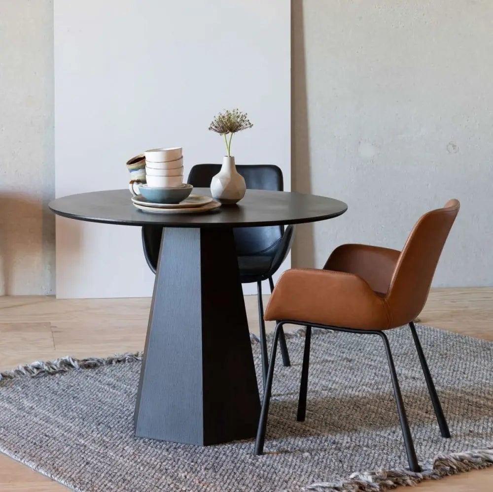 Czarny stół Pilar to wyjątkowe połączenie smukłego blatu z geometryczną podstawą. Stół został wykonany z forniru jesionowego, który świetnie się sprawdzi w nowoczesnej jadalni. Idealnie wpasuje się do minimalistycznej jadalni, czy nowoczesnego salonu.
