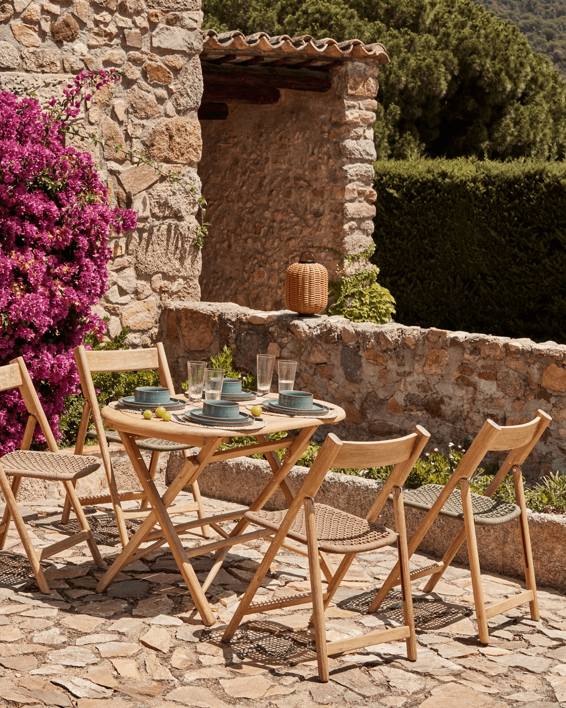 Odkryj wyjątkową wygodę i estetykę dzięki krzesłu Dandara, idealnemu rozwiązaniu dla małych przestrzeni na zewnątrz, takich jak balkony. Wykonane z litego drewna akacjowego, te składane krzesła doskonale komponują się z otoczeniem, umożliwiając Ci cieszenie się promieniami słońca w wyjątkowym komforcie.