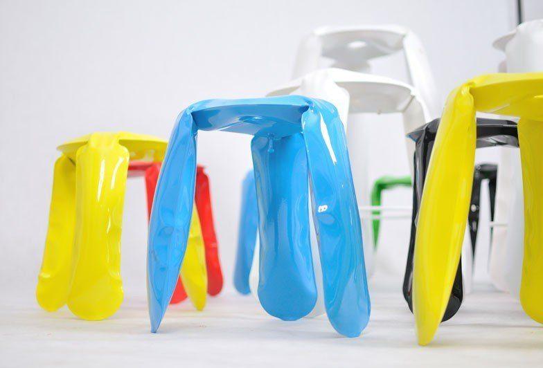Plopp to nie tylko mebel, ale również manifest technologii FiDU (Freie Innendruck Umformung) oraz procesu "kontrolowanej utraty kontroli". Stołek został stworzony z dwóch ultracienkich arkuszy stali, które są spawane ze sobą wokół krawędzi, a następnie nadmuchiwane pod wysokim ciśnieniem. Dzięki temu procesowi płaska forma 2,5D zostaje deformowana w trójwymiarowy obiekt, nadając stołkowi niezwykłe kształty i dynamiczny wygląd.