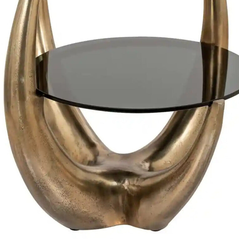 Ekskluzywny stolik Aida dwupoziomowy to połączenie elegancji i funkcjonalności w nowoczesnym wydaniu. Złota podstawa o rzeźbiarskiej formie przyciąga wzrok, a dwa szklane blaty dodają całości lekkości i wyrafinowanego charakteru. To wyjątkowy mebel, który stanie się ozdobą każdego wnętrza, łącząc praktyczność z artystycznym designem.