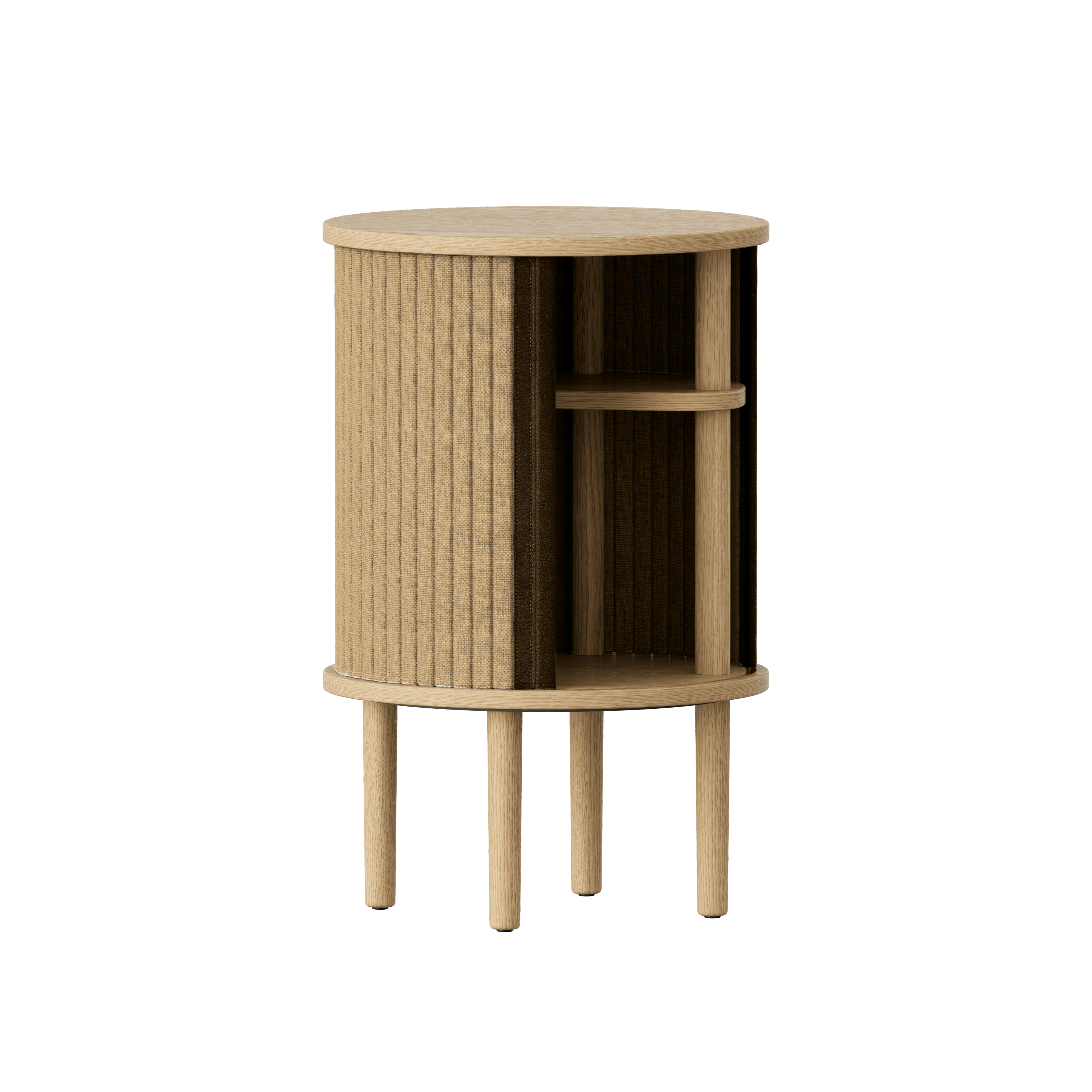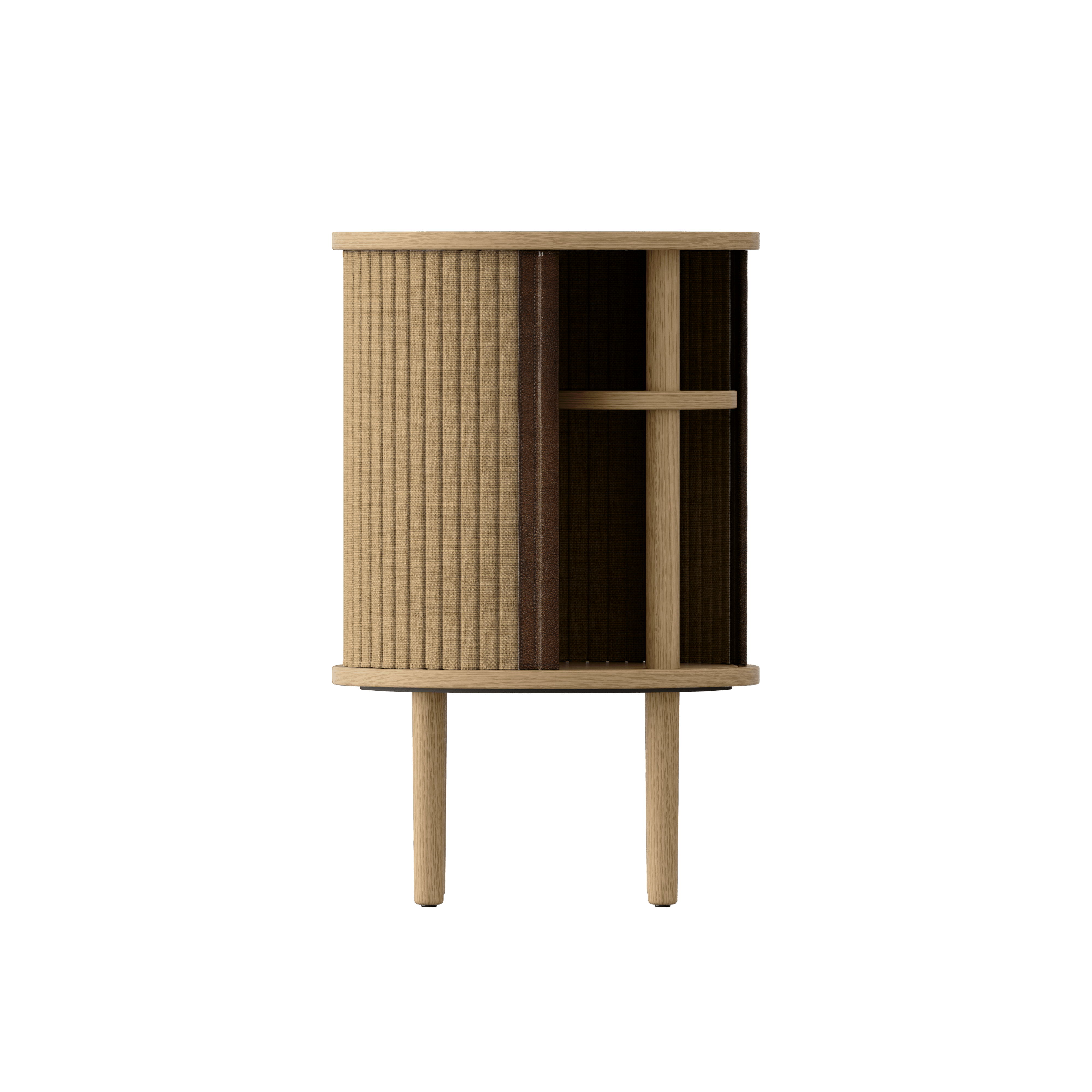 Dostępny w trzech kolorach: naturalny dąb, ciemny dąb i czarny dąb, z żaluzjami w czterech starannie dobranych kolorach tkaniny Horizons, pochodzącej w 100% z recyklingu. Żaluzje są wymienne, co oznacza, że możesz łatwo zmieniać je samodzielnie, dodając nowe życie projektowi bez konieczności zakupu zupełnie nowego mebla, co jednocześnie przyczynia się do oszczędzania światowych zasobów.