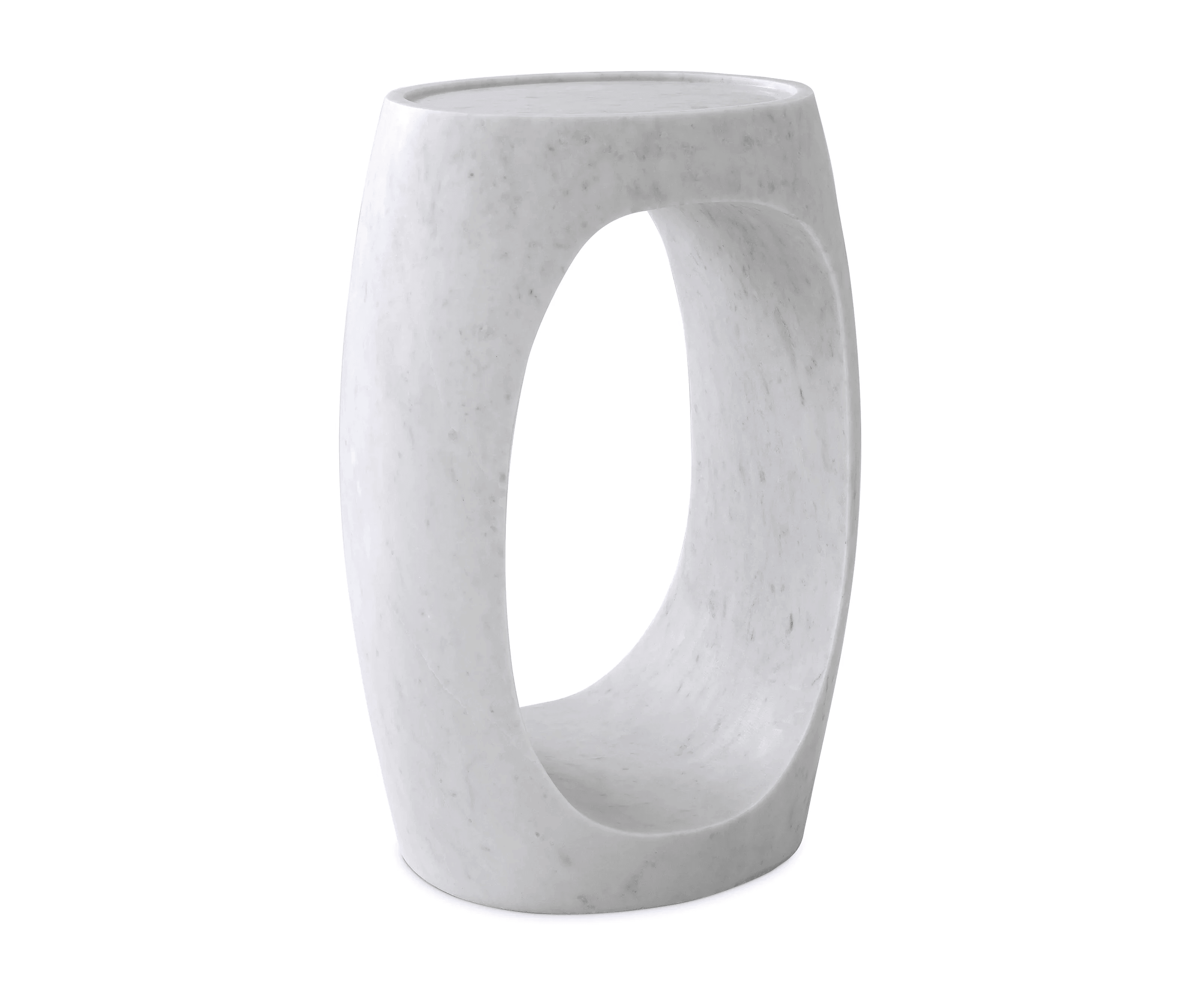 Co wyróżnia biały stolik Clipper na tle innych stolików, to fakt, że jest w całości wyrzeźbiony z jednego kawałka białego marmuru. Dzięki temu każdy egzemplarz posiada unikalne żyłki i niuanse kolorystyczne, które sprawiają, że jest on jedyny w swoim rodzaju. Szlifowane wykończenie nadaje mu dodatkowego uroku, dodając kamieniowi nie tylko matowego blasku, ale także niezwykle miękkiej w dotyku faktury.