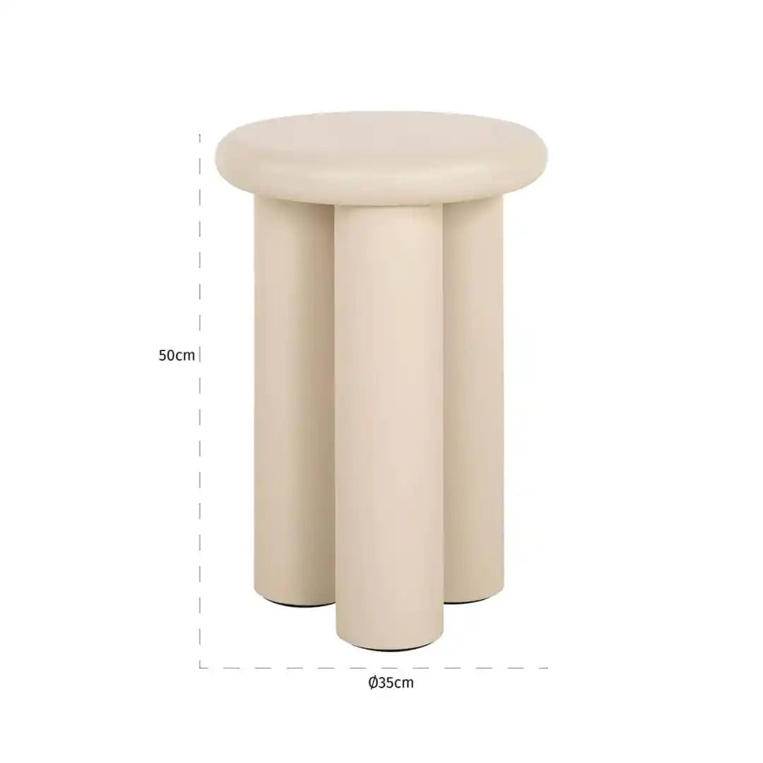 Elegancki stolik Elbaz w kolorze beżowym wyróżnia się minimalistycznym designem i ciekawą formą, która doskonale wpisuje się w nowoczesne aranżacje wnętrz. Jego geometryczna konstrukcja złożona z trzech masywnych nóg oraz prosty okrągły blat tworzą spójną i efektowną całość. To praktyczny i estetyczny dodatek, który nada pomieszczeniu subtelnej elegancji.