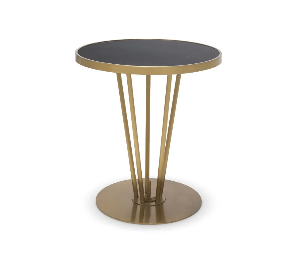 Stolik boczny Horatio to esencja elegancji w najbardziej minimalistycznym wydaniu. Jego linie są proste, ale wyrafinowane, tworząc kompozycję, która jest zarówno subtelna, jak i wyrazista. Wykończenie ze szczotkowanego mosiądzu nadaje ramie stolika delikatnego blasku, który pięknie kontrastuje z głębokim odcieniem czarnego marmuru. Ten szlifowany marmurowy blat nie tylko jest estetycznie atrakcyjny, ale także trwały i łatwy w utrzymaniu.