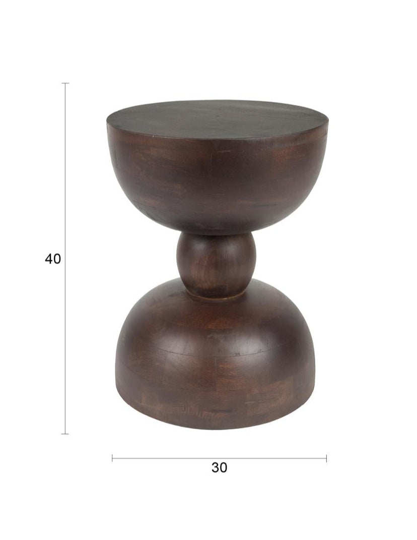 Stolik boczny Izzy o unikalnej formie przyciąga uwagę swoim rzeźbiarskim kształtem, który nadaje wnętrzu charakteru. Wykonany z litego drewna mango w głębokim brązowym odcieniu, wprowadza do aranżacji naturalne ciepło i elegancję. Doskonale sprawdza się jako stolik pomocniczy przy sofie, a także jako dekoracyjny element w salonie lub sypialni.