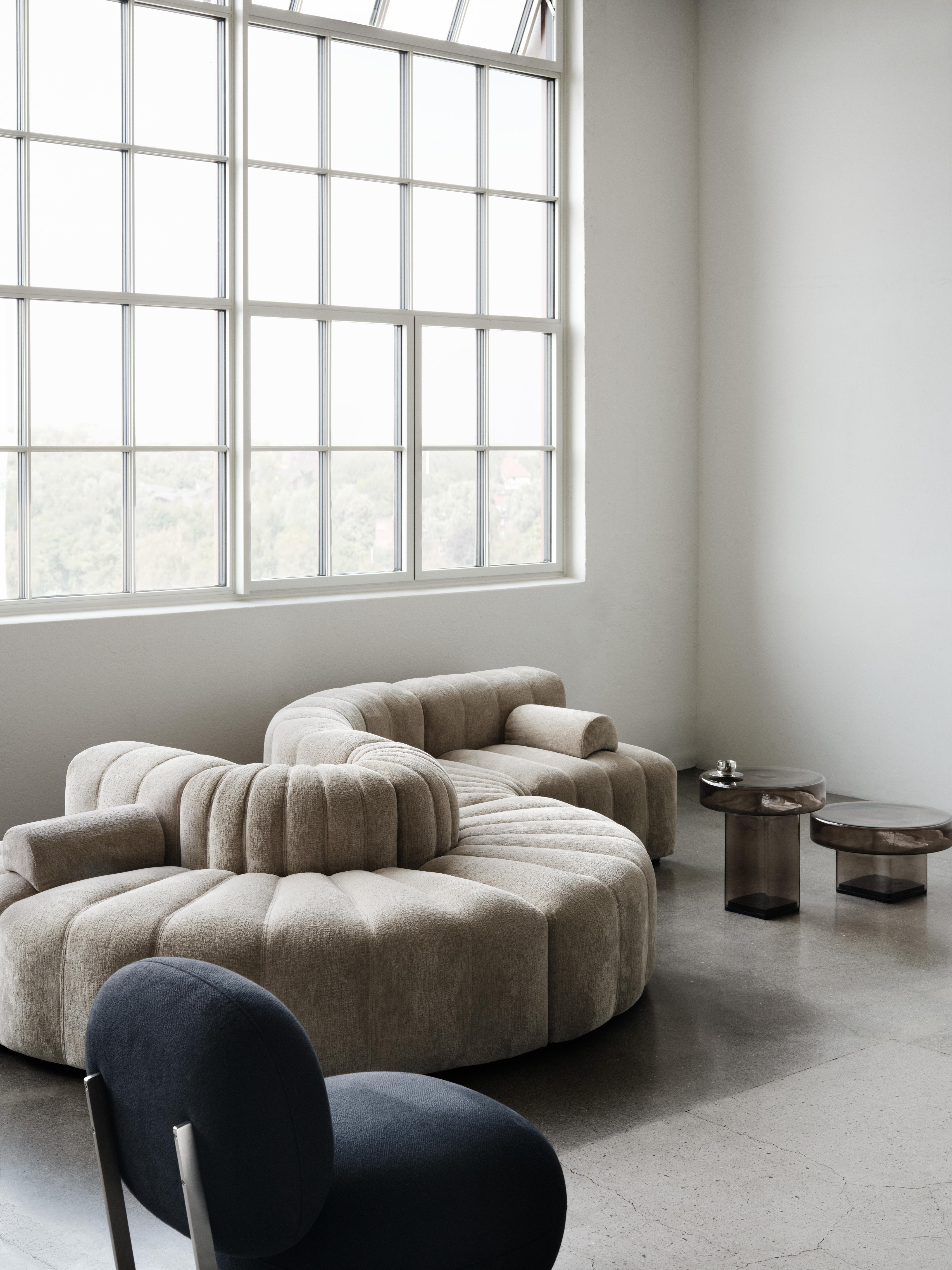 Stolik boczny Naked to esencja nowoczesnego rzemiosła i minimalistycznego designu. Wykonany z jednego kawałka ręcznie dmuchanego szkła, zachwyca czystością formy i przejrzystością materiału. Jego pogrubiany, okrągły blat spoczywa na kolumnowej, kwadratowej podstawie, tworząc wyważoną, rzeźbiarską sylwetkę. Ten szklany stolik boczny łączy w sobie lekkość i solidność – szkło nadaje mu subtelności, a podstawa z dymionego dębu dodaje naturalnego ciepła i stabilności.