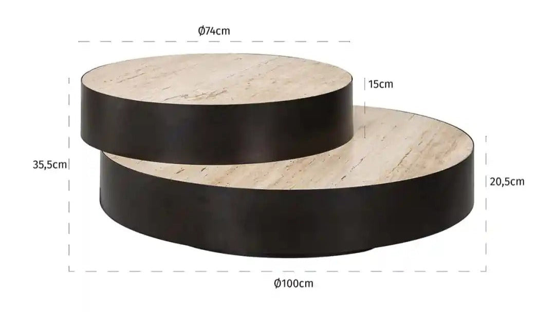 Elegancki stolik kawowy Avalon nowoczesnej formie to propozycja, która doda wnętrzu wyjątkowego charakteru. Okrągły blat wykonany z trawertynu w połączeniu z ciemną, masywną podstawą ze sklejki i żelaza tworzy harmonijne zestawienie naturalnego piękna i industrialnej solidności. Jego geometryczna forma sprawia, że staje się centralnym punktem aranżacji, idealnym zarówno do minimalistycznych, jak i bardziej wyrazistych przestrzeni.