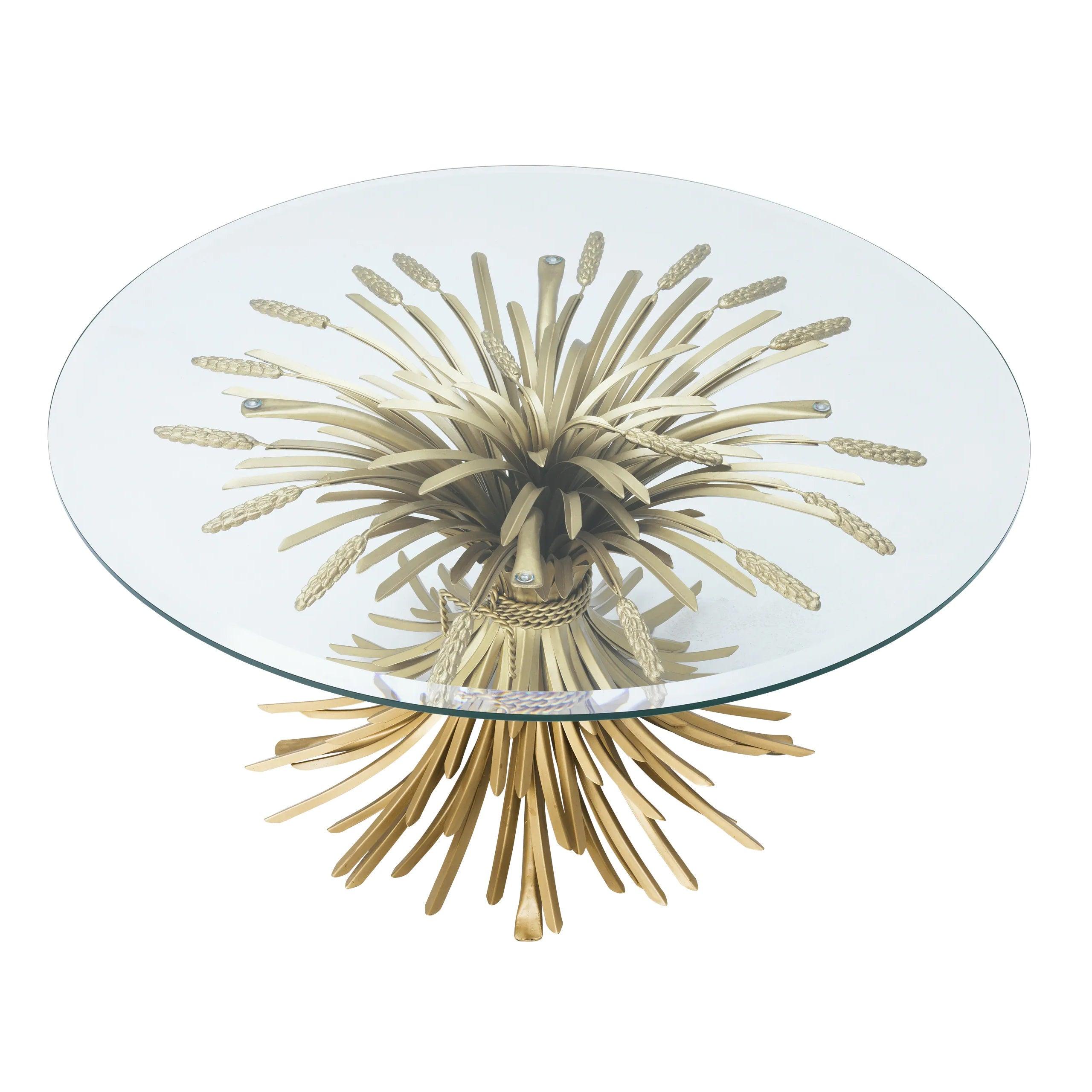 Stolik kawowy Bonheur to prawdziwy klejnot, który zdobi przestrzeń swoim olśniewającym wyglądem. Wykonany z żelaza w pięknym kolorze antycznego złota, ten stolik to zarówno dzieło sztuki, jak i funkcjonalny element wnętrza.
