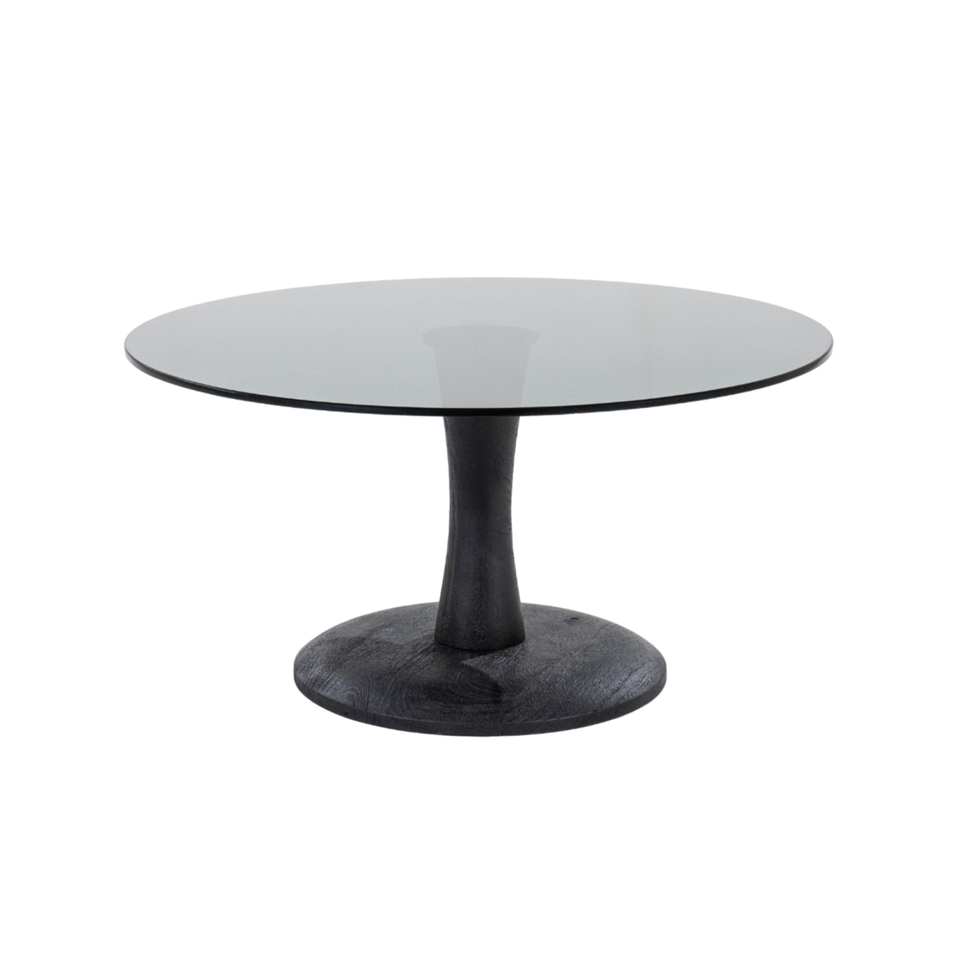 Stolik kawowy BOOGIE szkło i czarne drewno mango