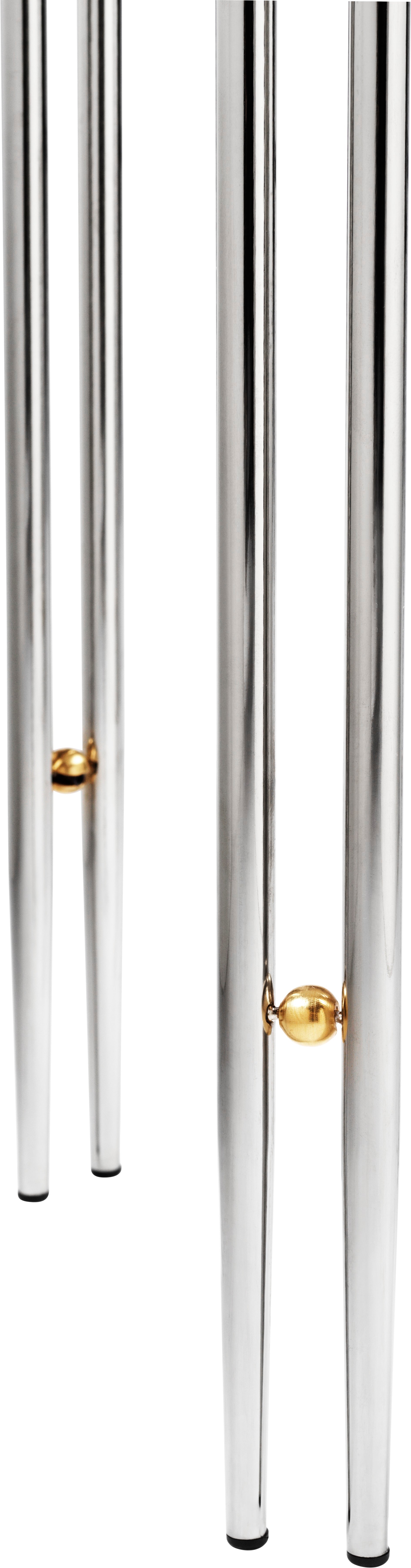 Chromowana podstawa, kule z mosiądzu, trawertyn Rippled Beige