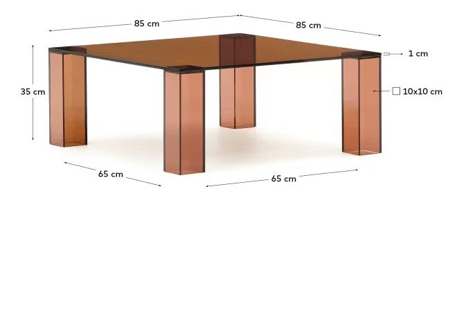 Kwadratowy stolik kawowy Adularia to nowoczesny akcent w brązowym szkle hartowanym, który wnosi elegancję do każdego wnętrza. Jego nowatorska konstrukcja z niewidocznymi połączeniami między blatem a nogami dodaje lekkości i stylu.