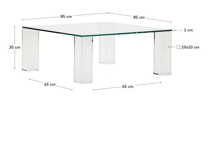 Stolik kawowy kwadratowy ADULARIA transparentne szkło hartowane