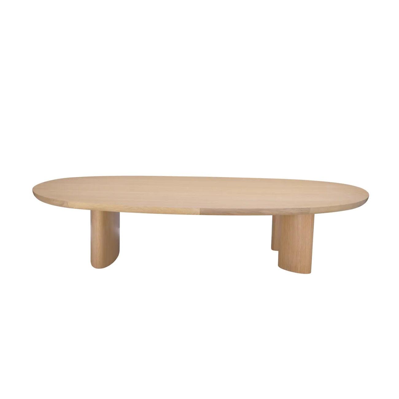 Stolik kawowy Lindner to perfekcyjne połączenie formy i funkcji. Jego design czerpie inspirację z natury, co widoczne jest w organicznym kształcie blatu i eleganckich elipsowatych nogach, które razem tworzą harmonijną i spójną całość.