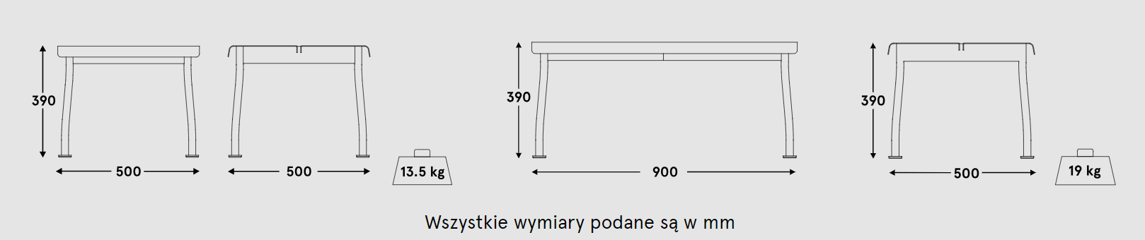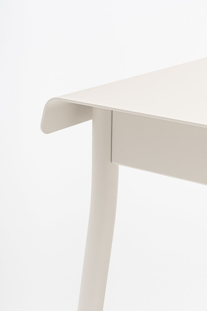 Nogi stolika zakończone są podkładkami, które chronią przed zapadaniem się na miękkim podłożu. Metalowa konstrukcja wykończona matową farbą jest odporna na warunki atmosferyczne i łatwa w pielęgnacji. Wysokość 390 mm jest idealnie dopasowana do siedzisk kolekcji, a minimalistyczna forma i szeroka gama kolorystyczna sprawiają, że stolik wtapia się w zielone otoczenie.