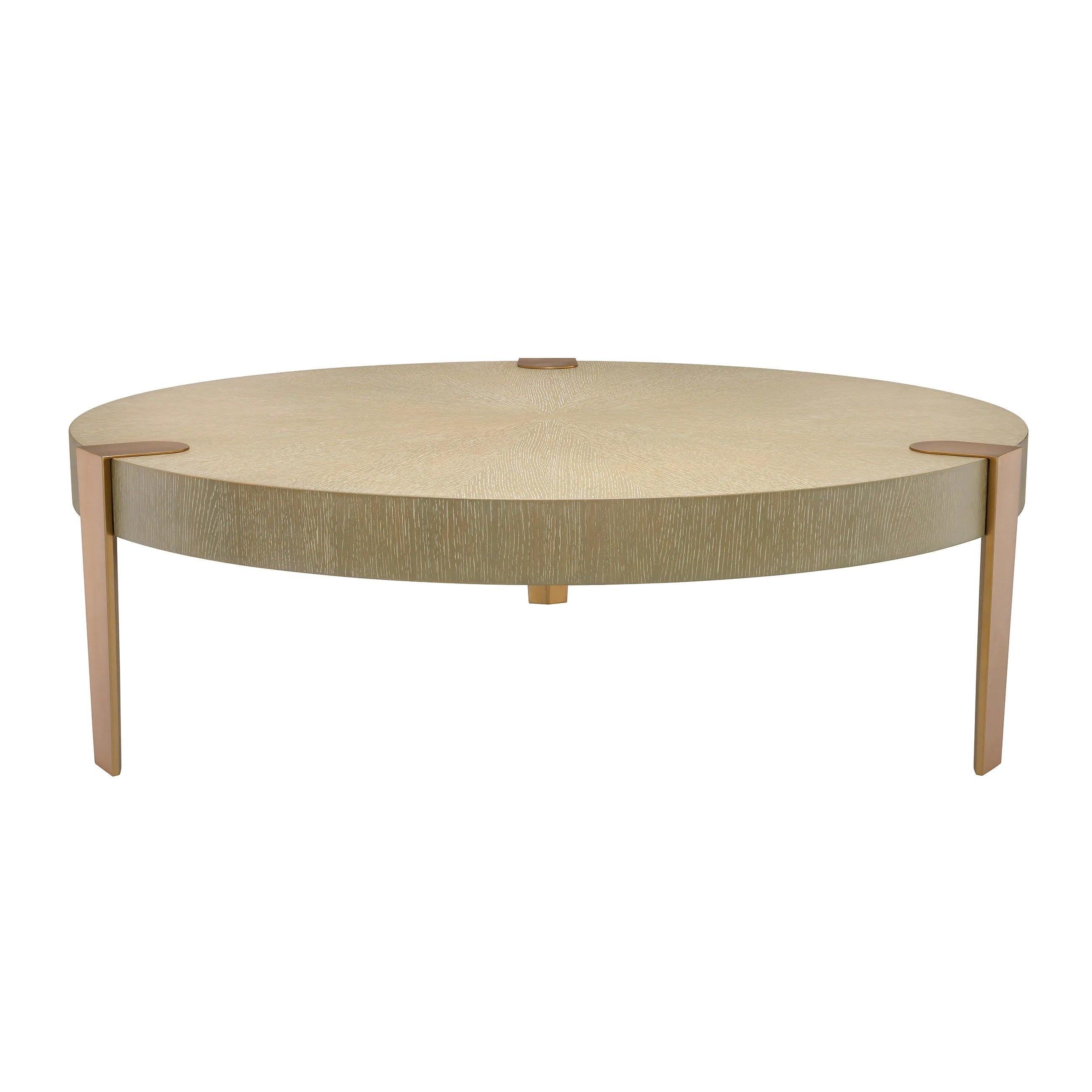 Blat z forniru dębowego w jasnym odcieniu to hołd dla natury, ukazany w nieco industrialnym i nowoczesnym świetle. W połączeniu z trzema nogami o wykończeniu szczotkowanego mosiądzu stolik prezentuje się zarazem lekko i stabilnie, wprowadzając do przestrzeni życiowej równowagę i harmonię.