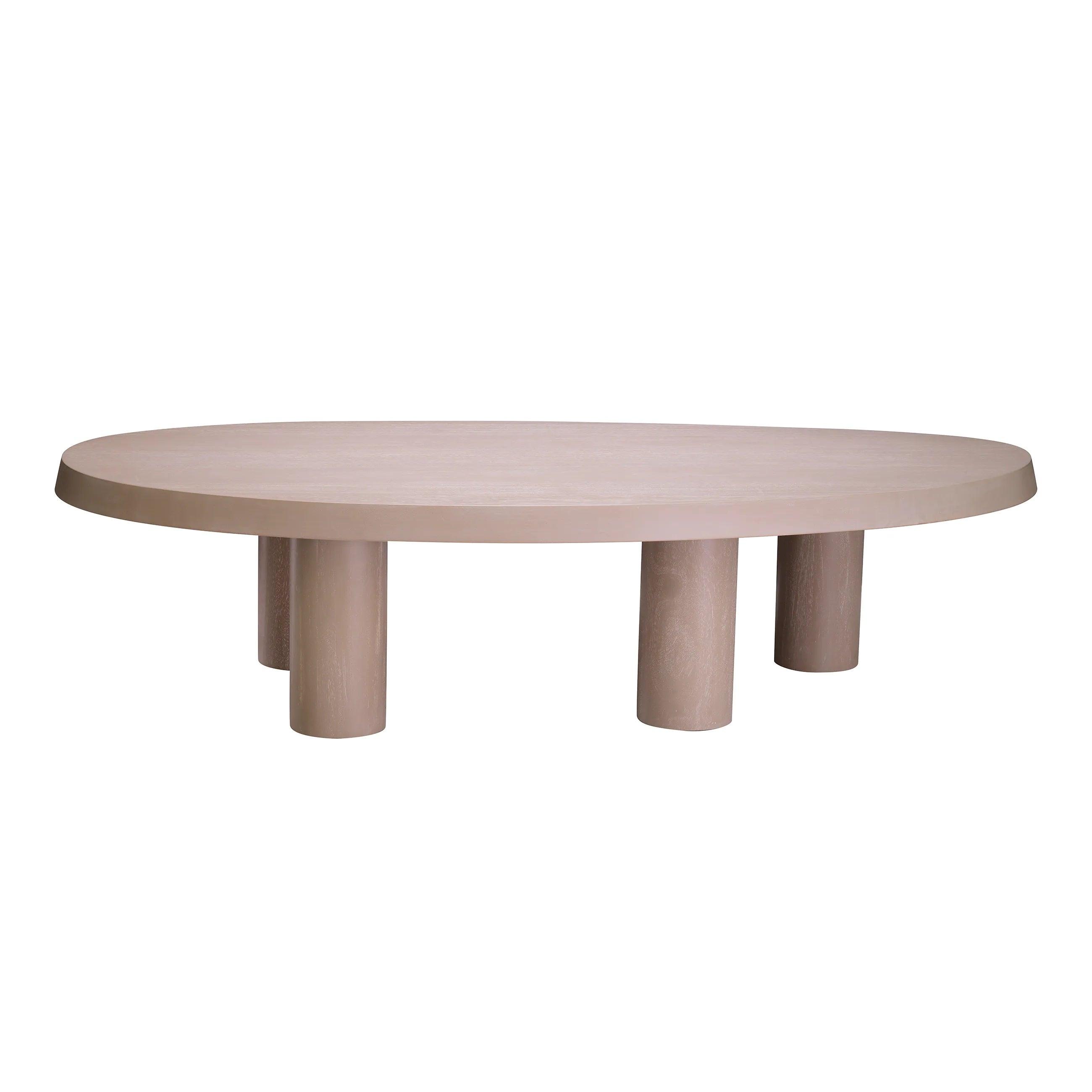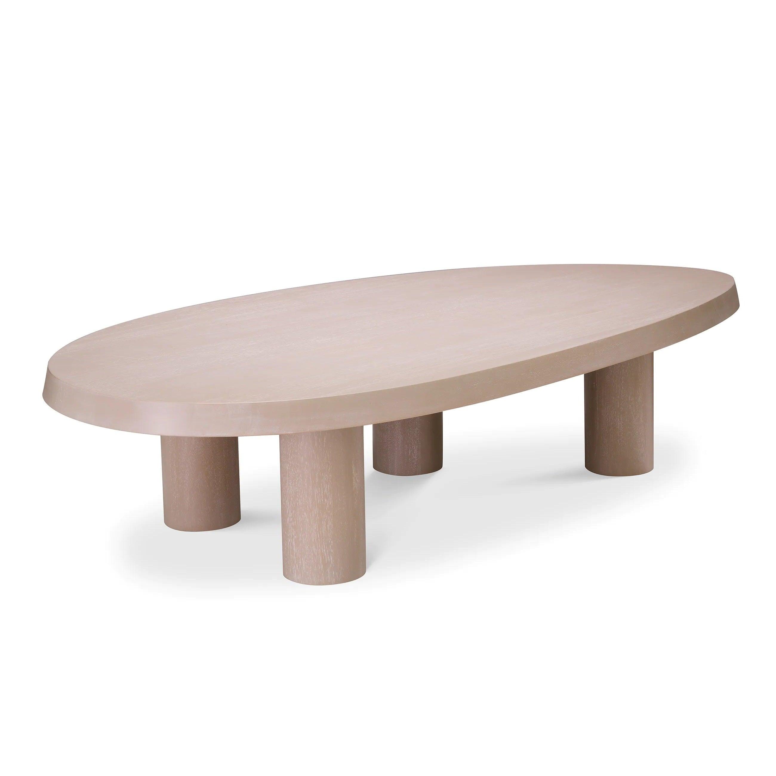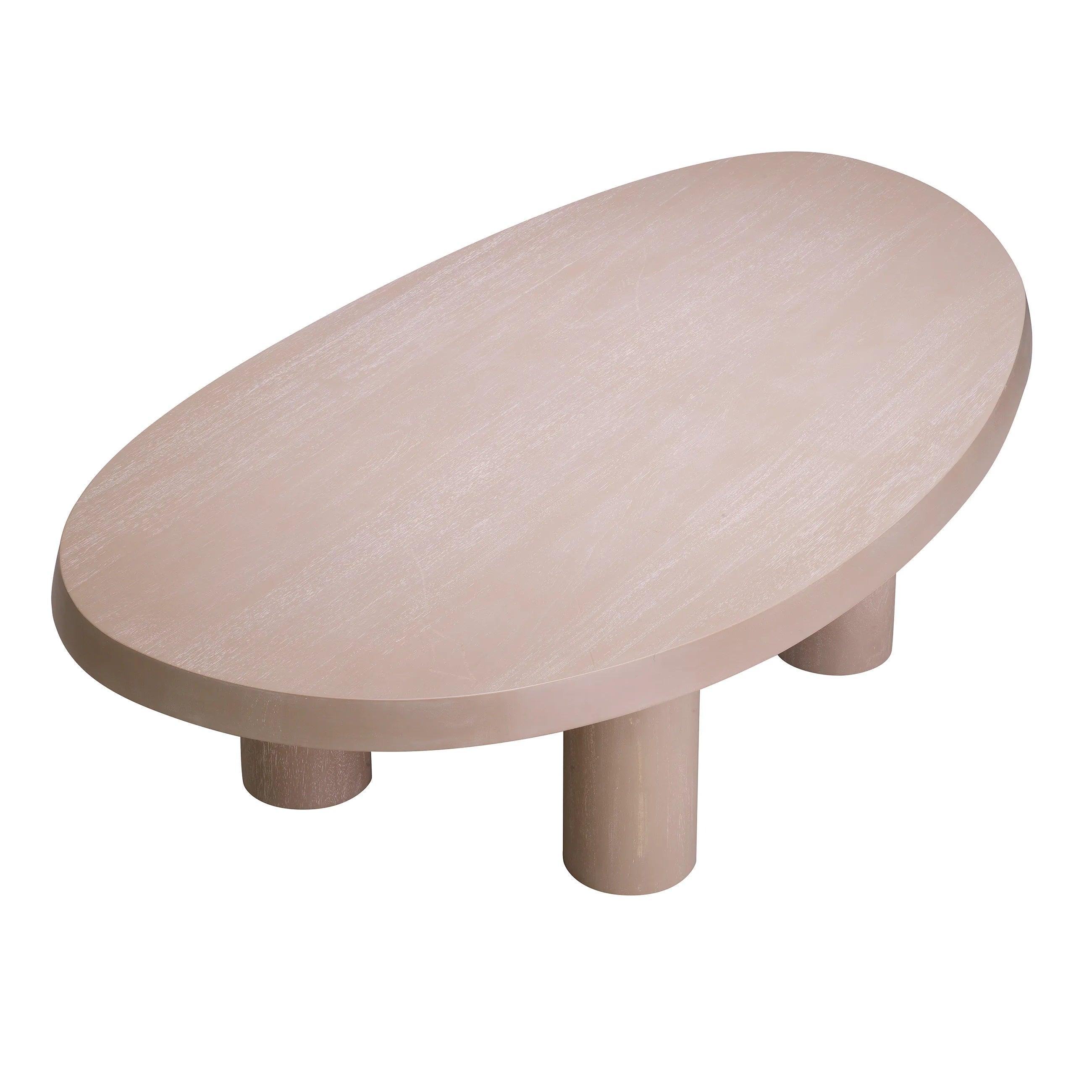 To, co od razu rzuca się w oczy, to unikalny design jasnobrązowego stolika. Jego swobodny kształt jest zarazem prosty i intrygujący, stanowiąc odświeżające odejście od konwencjonalnych form. Wyróżniające się cztery nogi stolika nie są umieszczone w sposób, jaki znamy z większości stolików kawowych. Zamiast tego, ich pozycja i kąt nachylenia nadają meblowi dynamikę i wrażenie lekkości, mimo solidnego materiału, z którego jest wykonany.