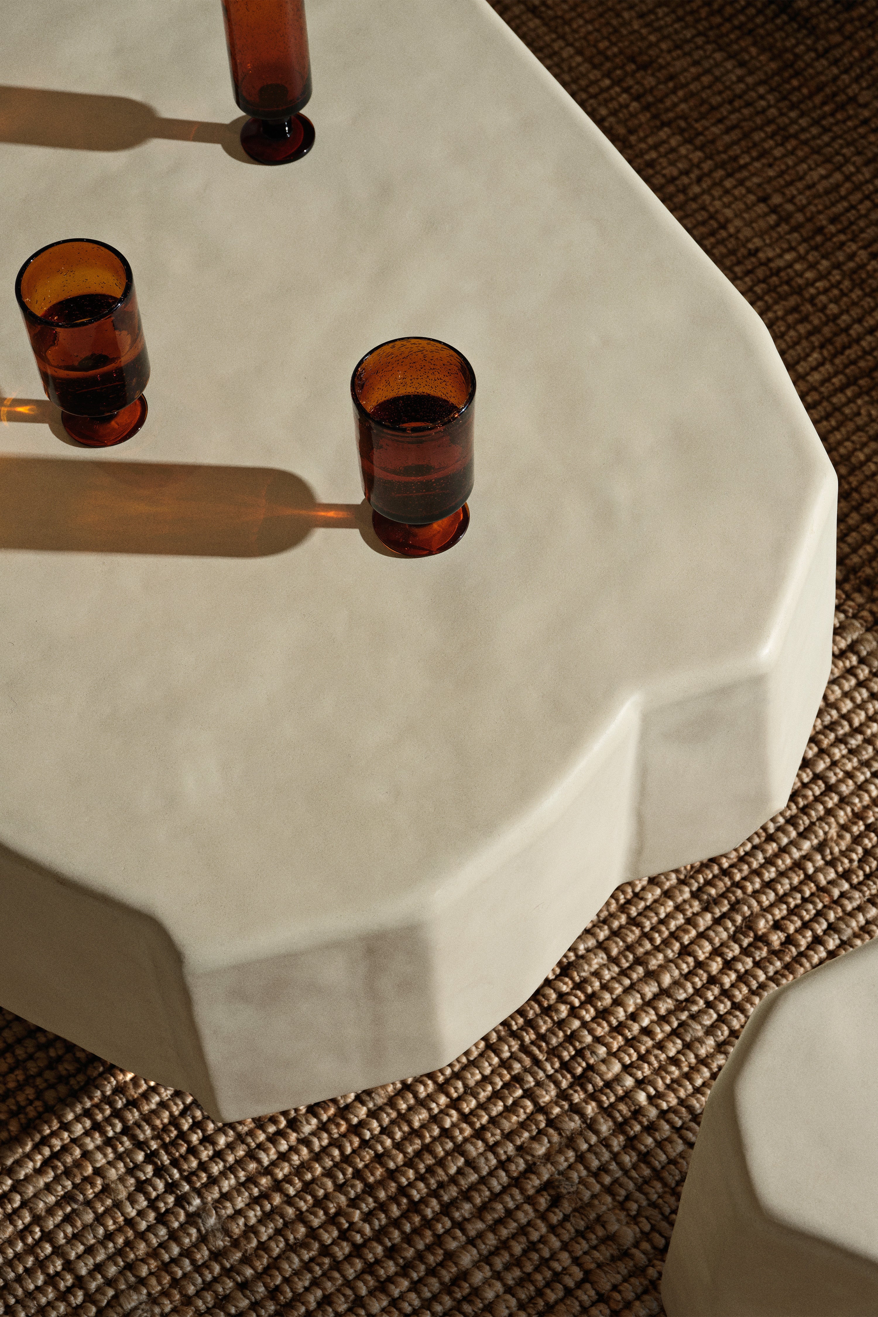 Stolik kawowy Staffa to wyjątkowy mebel inspirowany wulkanicznymi formacjami skalnymi z wyspy Staffa w Szkocji. Nazwa kolekcji, oznaczająca „filar” w staronordyckim, podkreśla solidny i monumentalny charakter tego projektu. Wykonany z betonu zbrojonego włóknem szklanym, stolik został stworzony za pomocą innowacyjnego procesu odlewania, co nadaje mu surową, teksturalną powierzchnię przypominającą ręcznie rzeźbiony kamień.