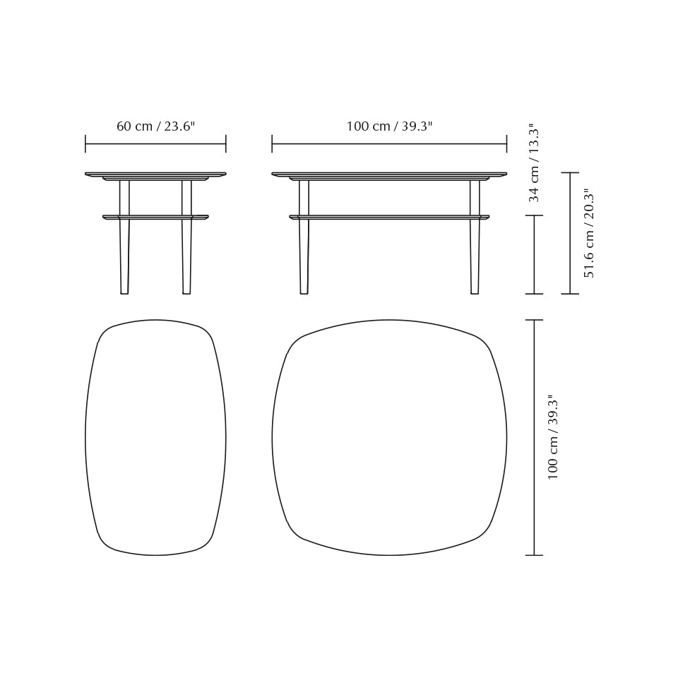 Stolik kawowy Together dostępny jest w dwóch wariantach: z kwadratowym bądź prostokątnym blatem. Obydwa modele dostępne są w kolorach dębu, ciemnego dębu oraz czarnego dębu.
