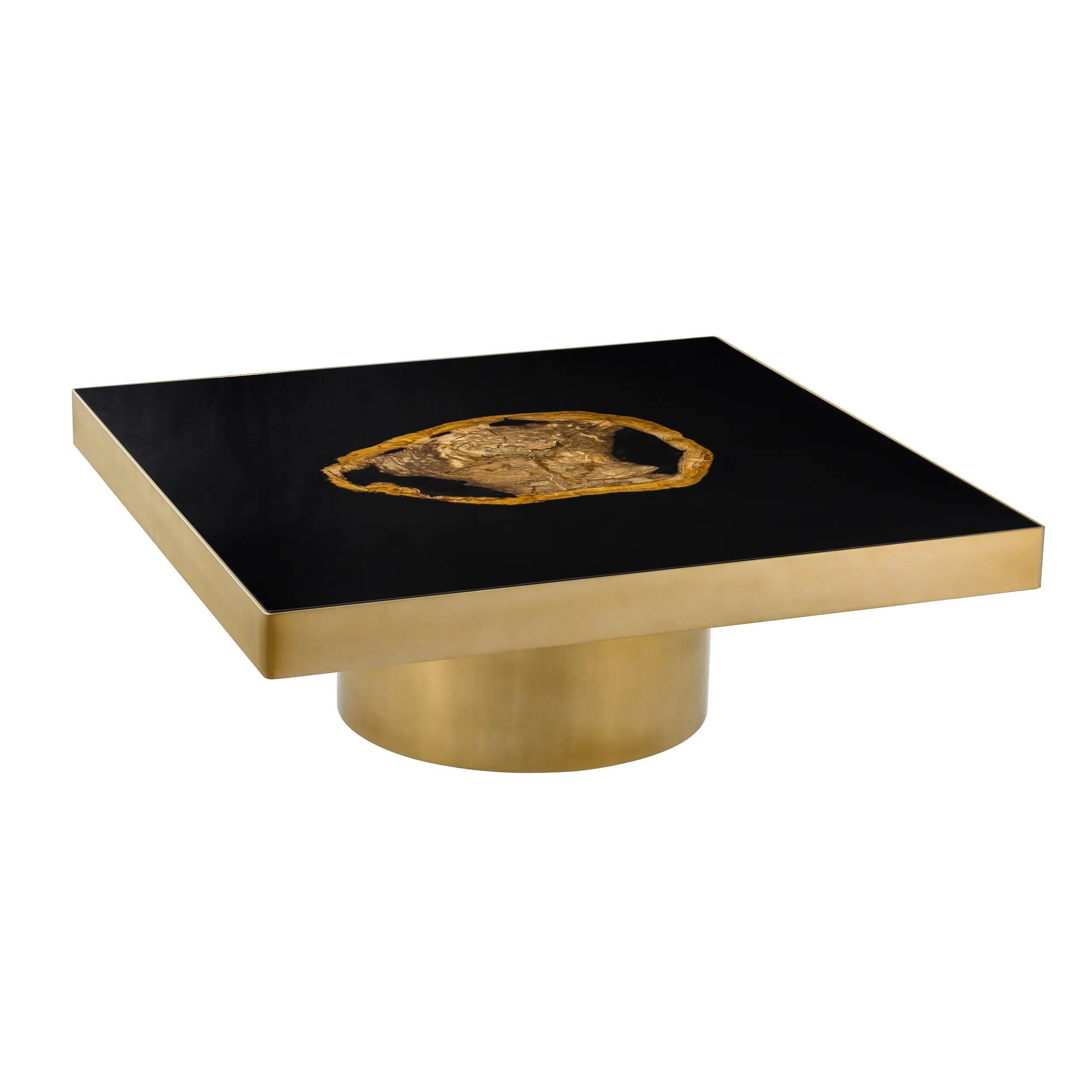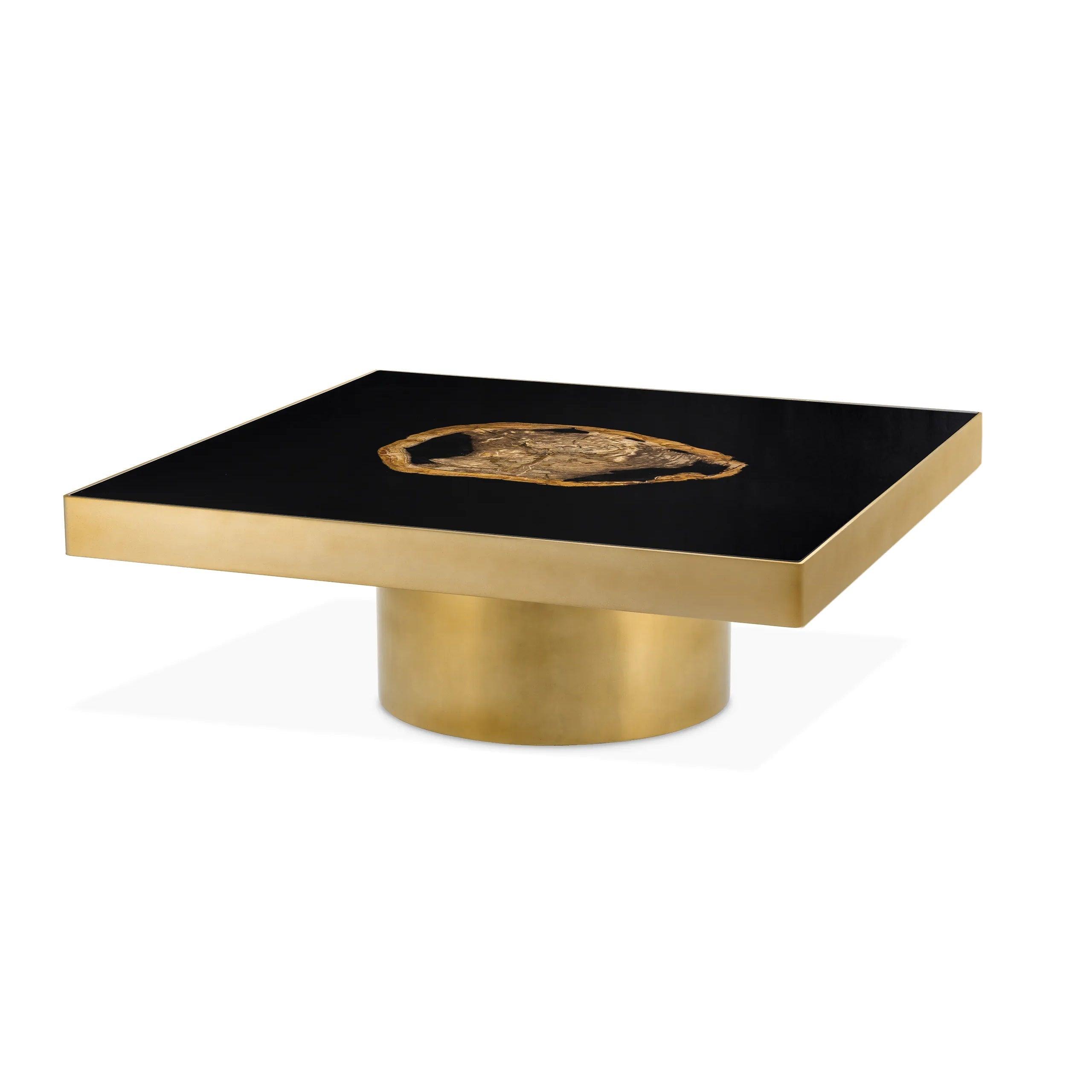 Najbardziej charakterystyczną cechą tego złotego stolika jest jego blat wykonany ze skamieniałego drewna. Ten unikalny materiał, który przechodził tysiące lat procesu przemiany, prezentuje różnorodność kolorów, wzorów i tekstur. Każdy fragment skamieniałego drewna jest inny, dzięki czemu żaden stolik Villièrs nie jest taki sam.