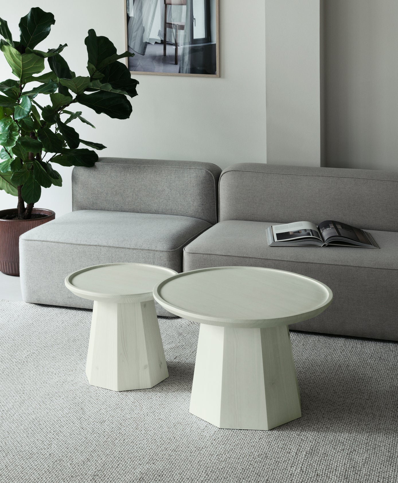 Drewno jest pokryte kolorowym lakierem, który podkreśla rysunek słojów, pozostawiając je wciąż widocznymi. Całość tworzy wrażenie harmonii między surową formą a eleganckim wykończeniem. Stolik Pine doskonale komponuje się zarówno w nowoczesnych, jak i bardziej klasycznych wnętrzach, dodając im charakteru i ciepła.