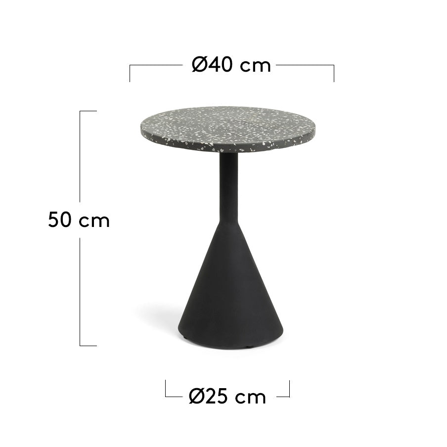 Stolik Delano to doskonałe odwzorowanie sztuki wizualnej. Odważny, ale elegancki, ten element z lastryko z geometryczną podstawą z metalu doskonale pasuje do każdej przestrzeni.