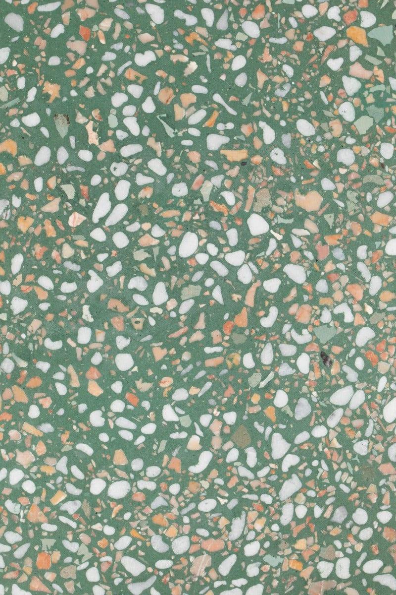Stolik Victoria wykonano z włoskiego wynalazku XV wieku - lastryko, w kolorze zielonym czyli betonowej masy z zawartością kamiennego kruszywa. Wystarczy tylko spojrzeć na te delikatne kolorowe plamki, czy nie nadają one elegancji?