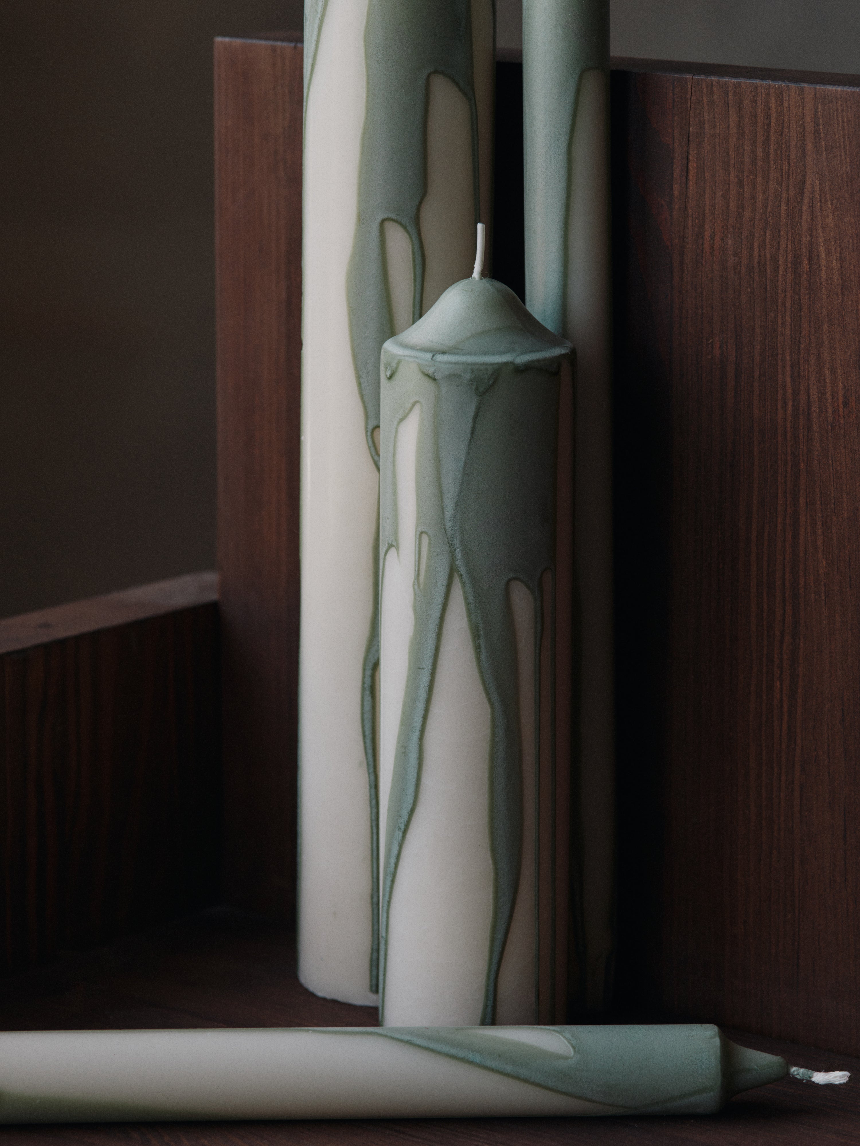 Zestaw świeczek DRYP beżowy z jasnozielonym