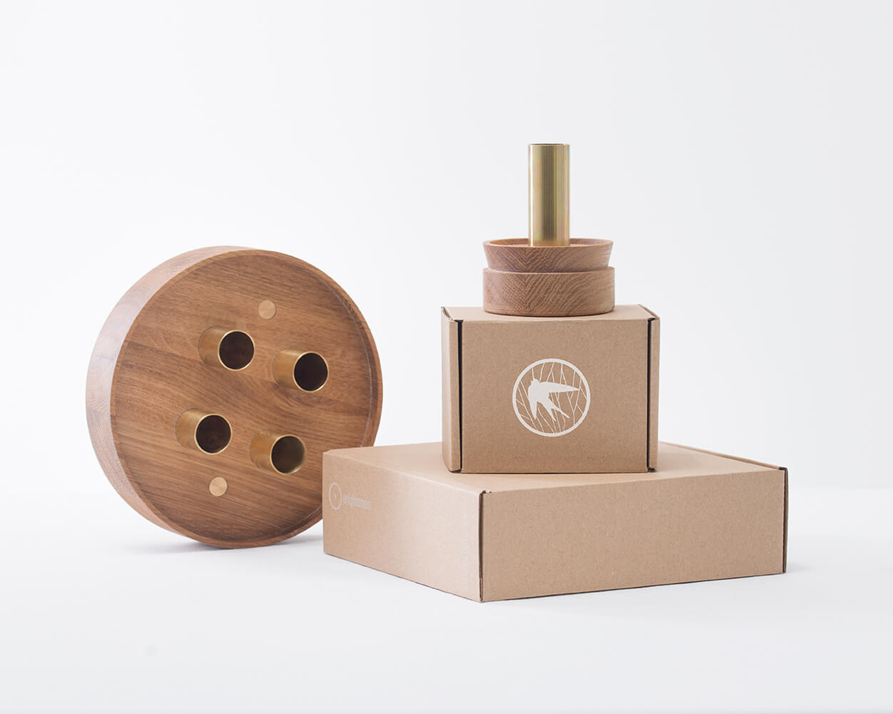 Świecznik ENLIGHTENMENT 4 dąb z mosiądzem