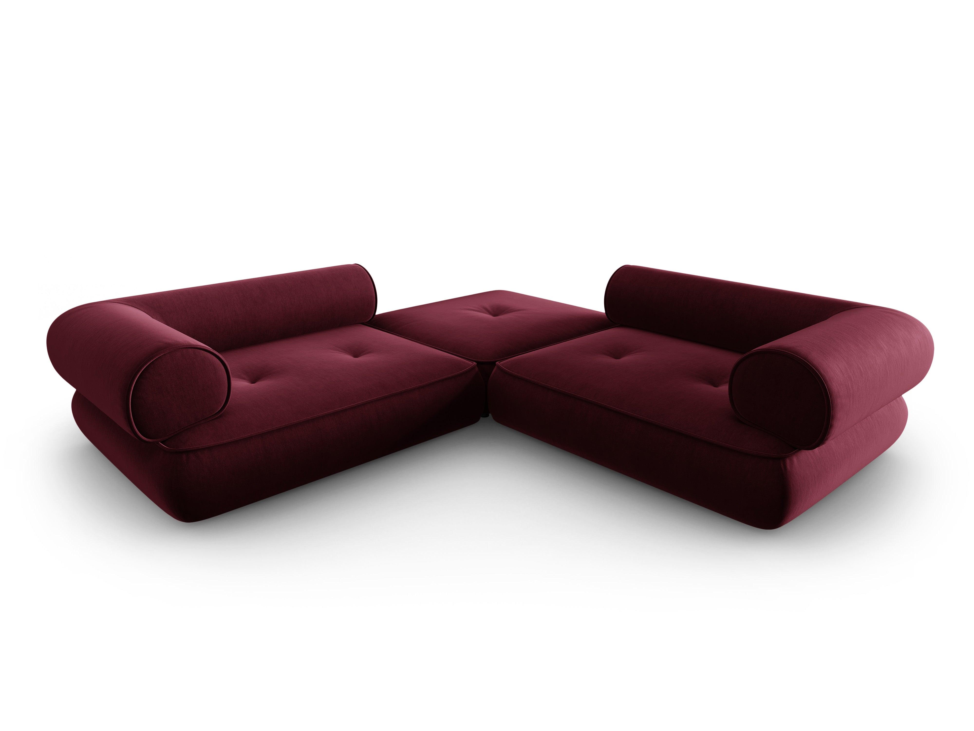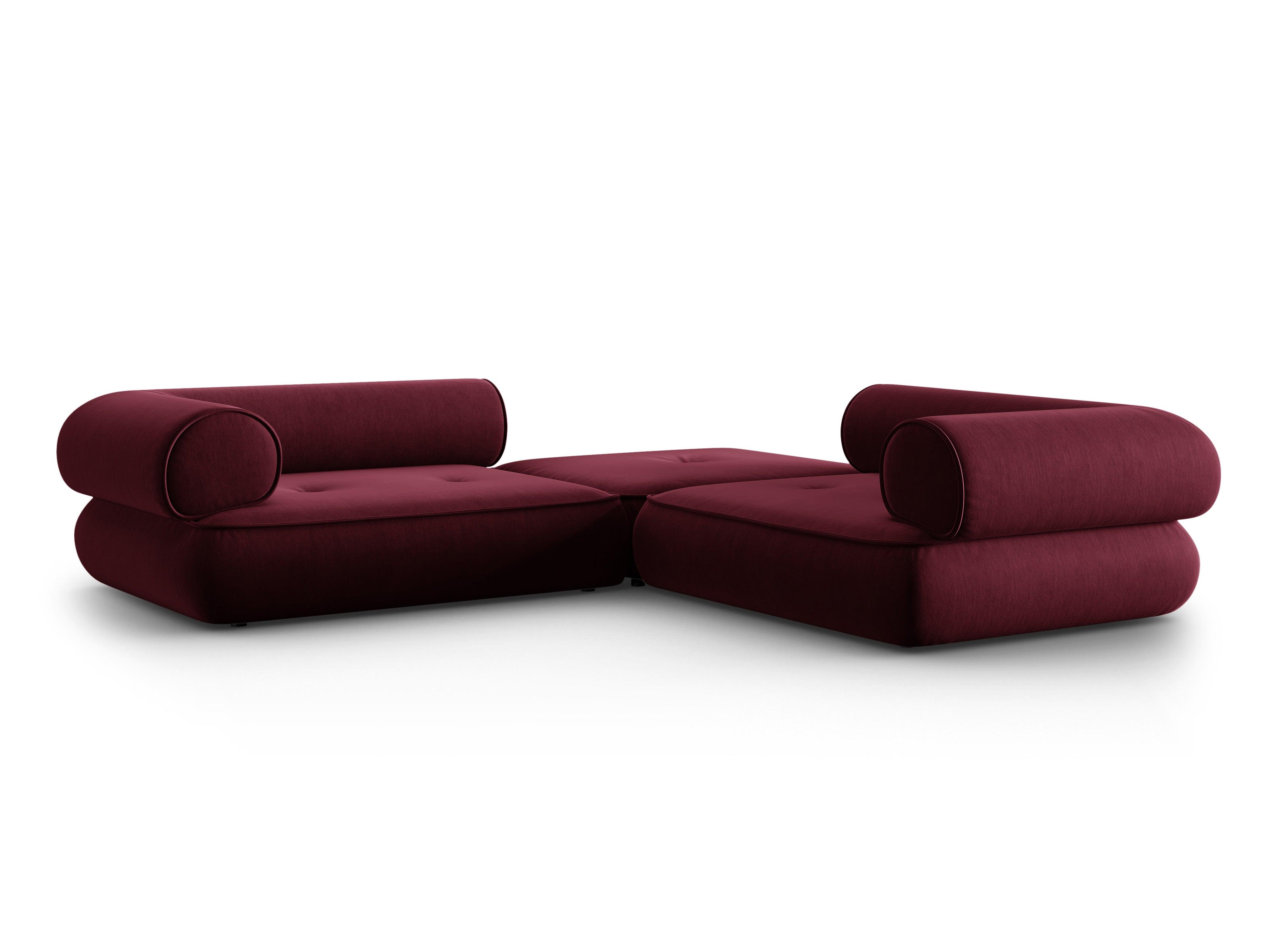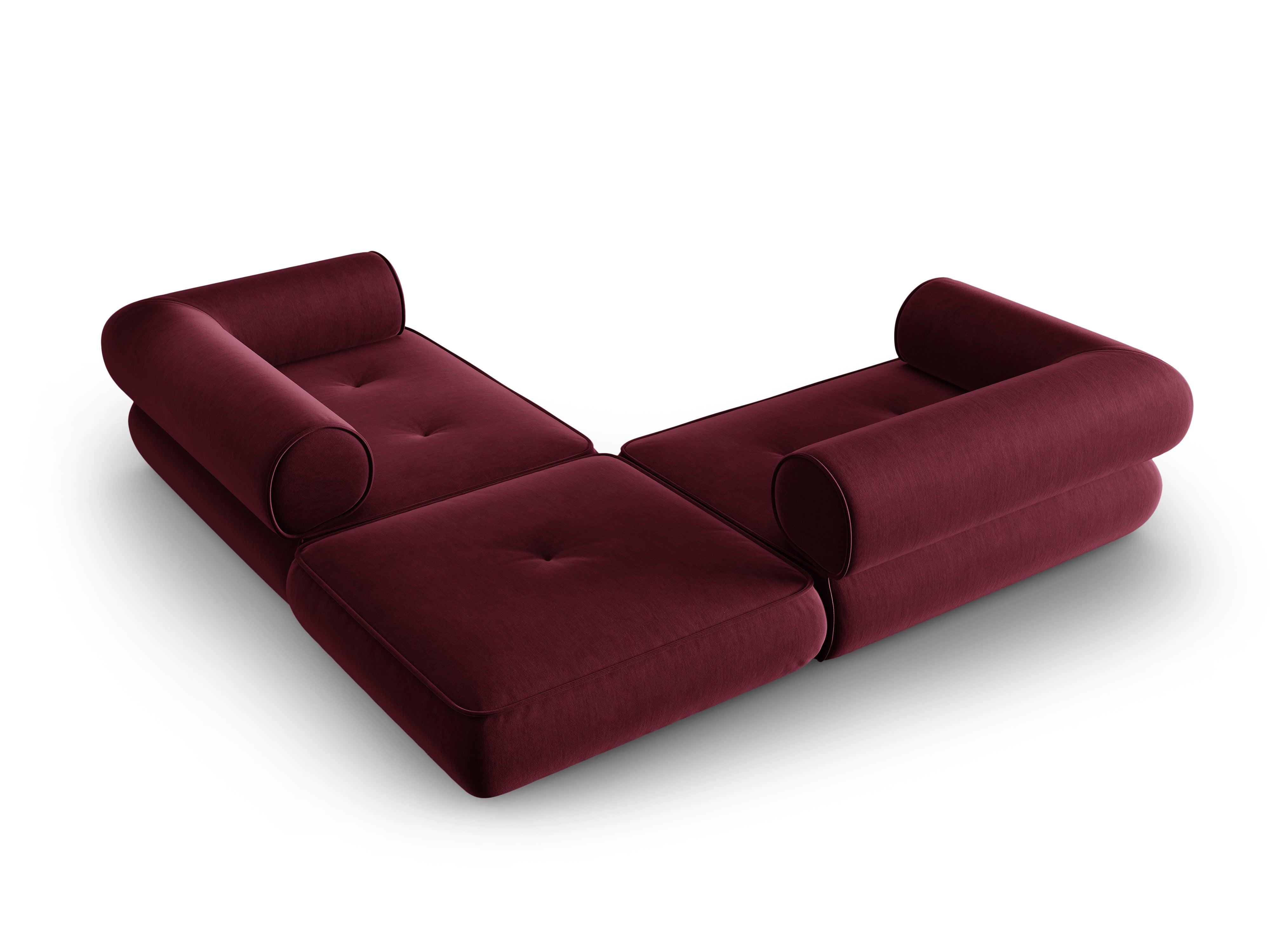 Narożnik w tkaninie szenilowej symetryczny otwarty LILY burgundowy