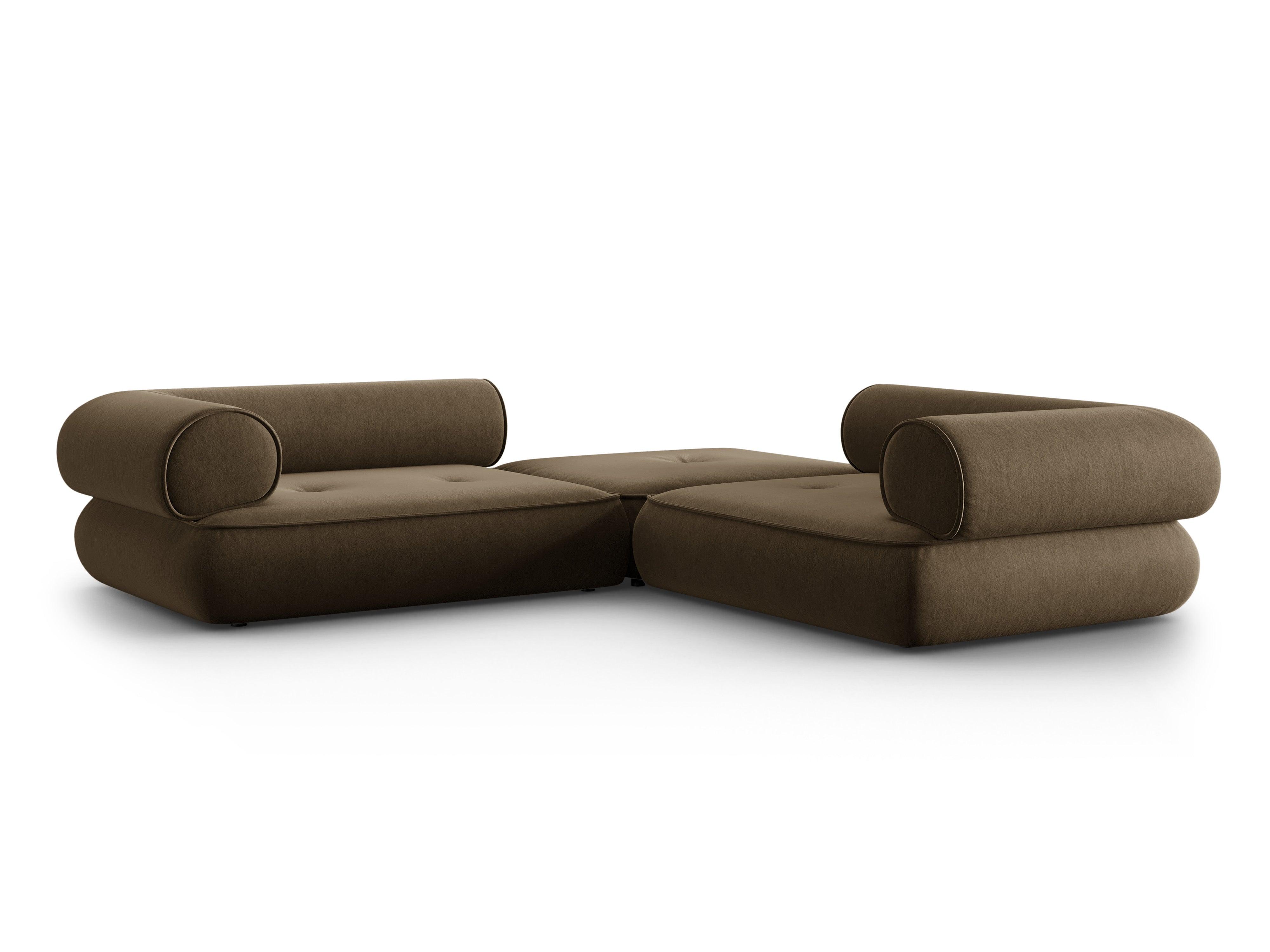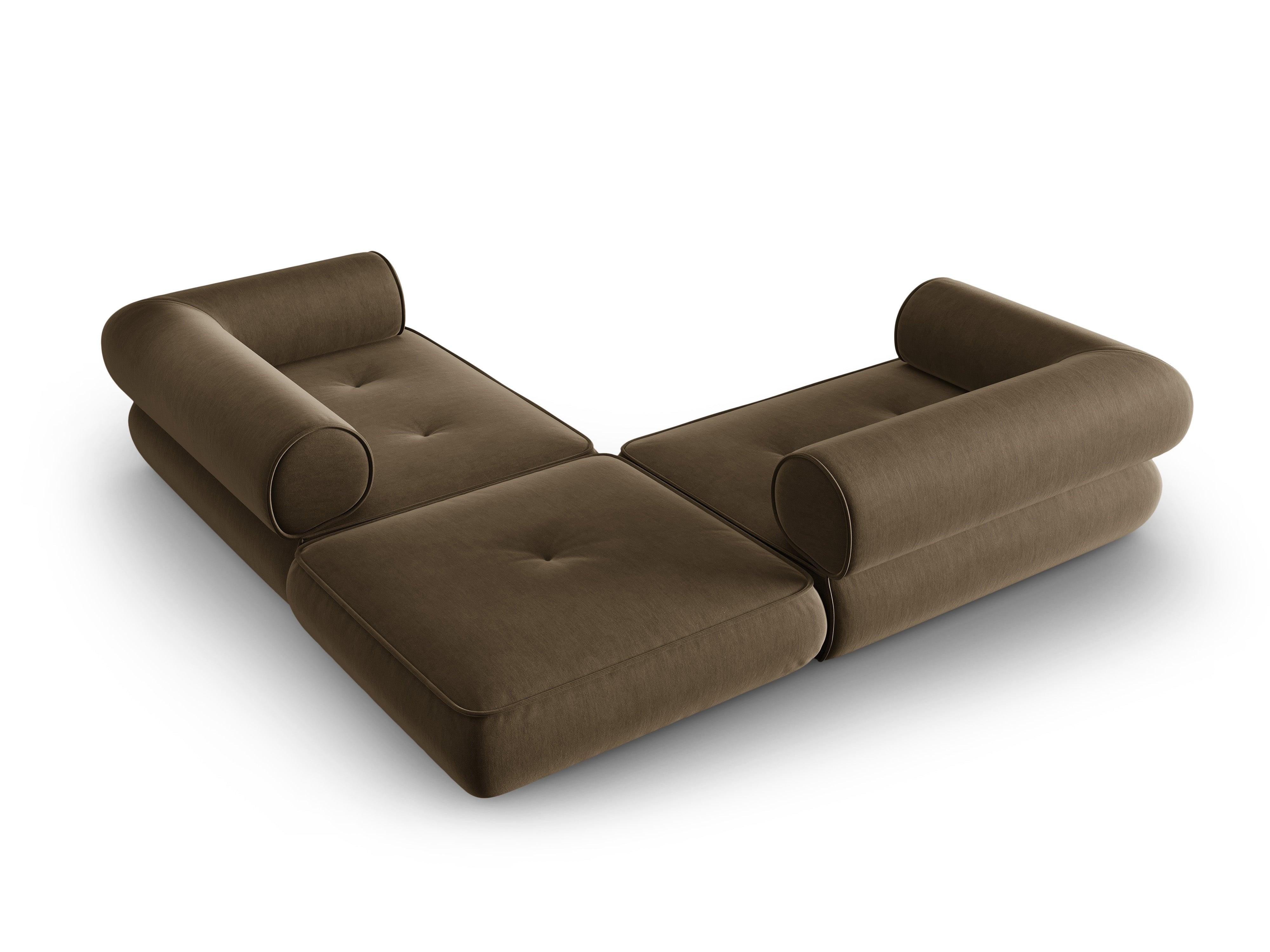 Narożnik w tkaninie szenilowej symetryczny otwarty LILY szarobrązowy