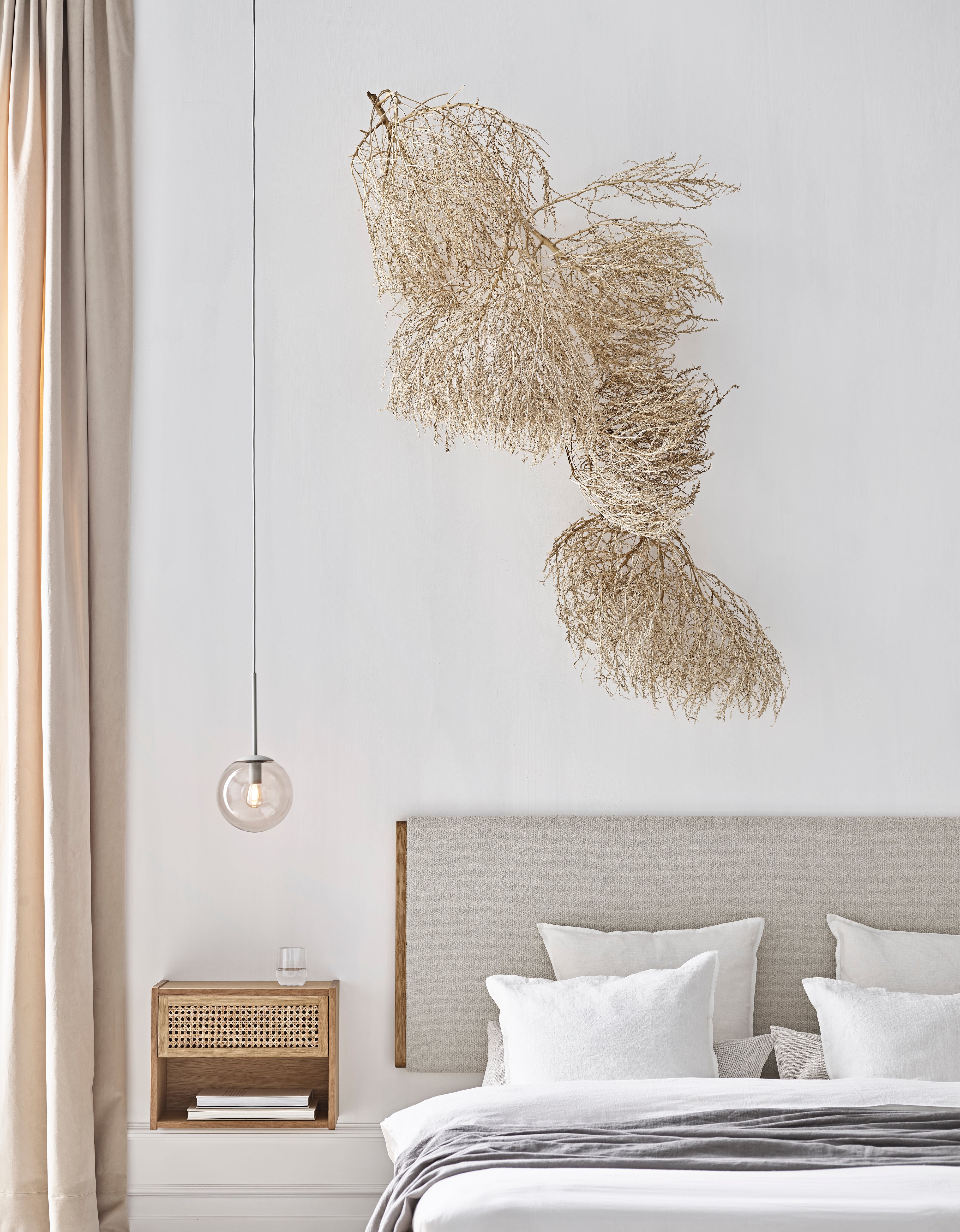 Stolik nocny Cana to kwintesencja subtelnego i funkcjonalnego designu. Z charakterystycznym, ażurowym frontem z plecionki, stolik dodaje wnętrzu lekkości i spokojnego uroku inspirowanego duńskimi hotelami nadmorskimi. Prosty i minimalistyczny w formie, idealnie wpasowuje się w sypialnie, w których harmonia i funkcjonalność odgrywają kluczową rolę.