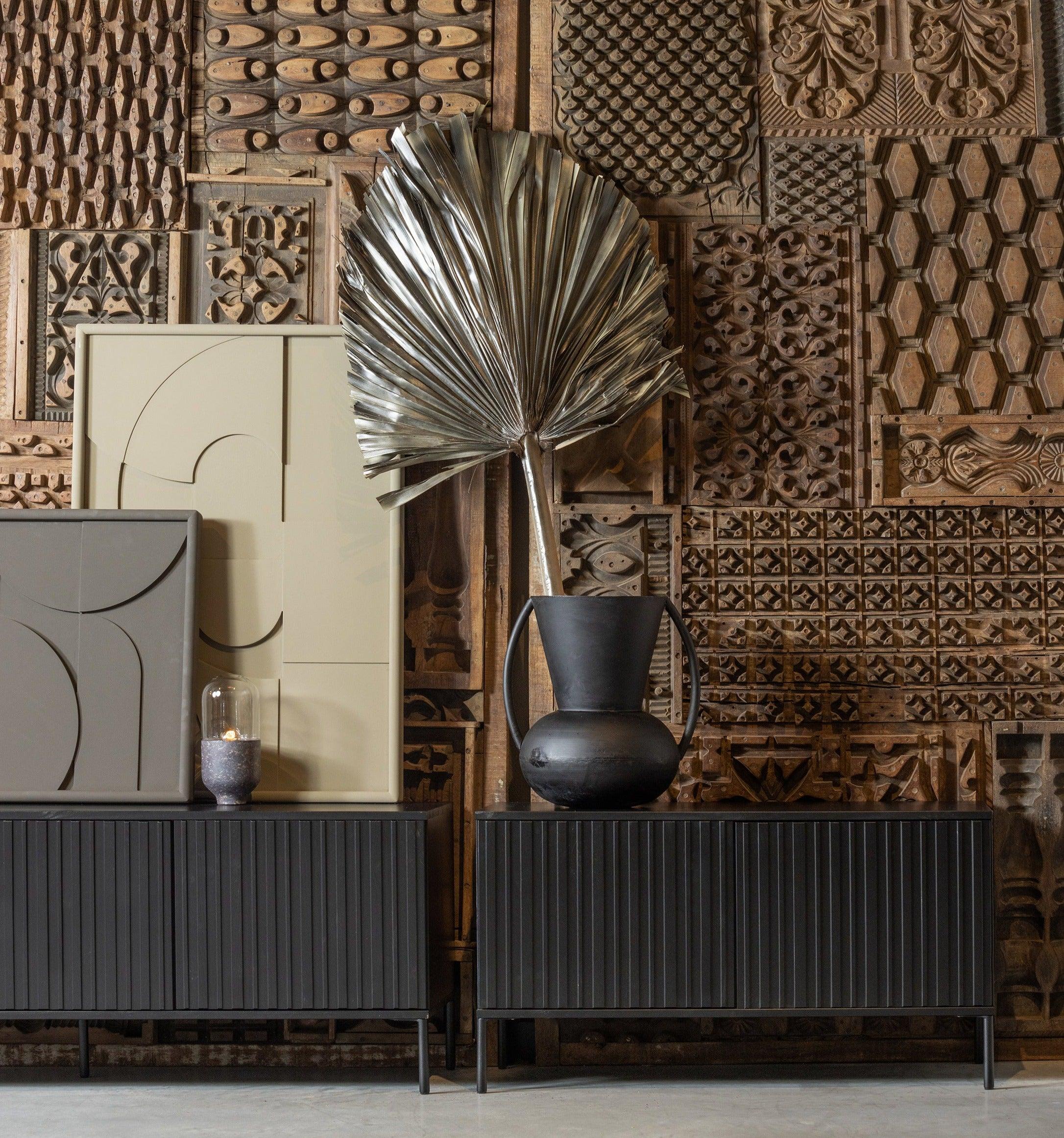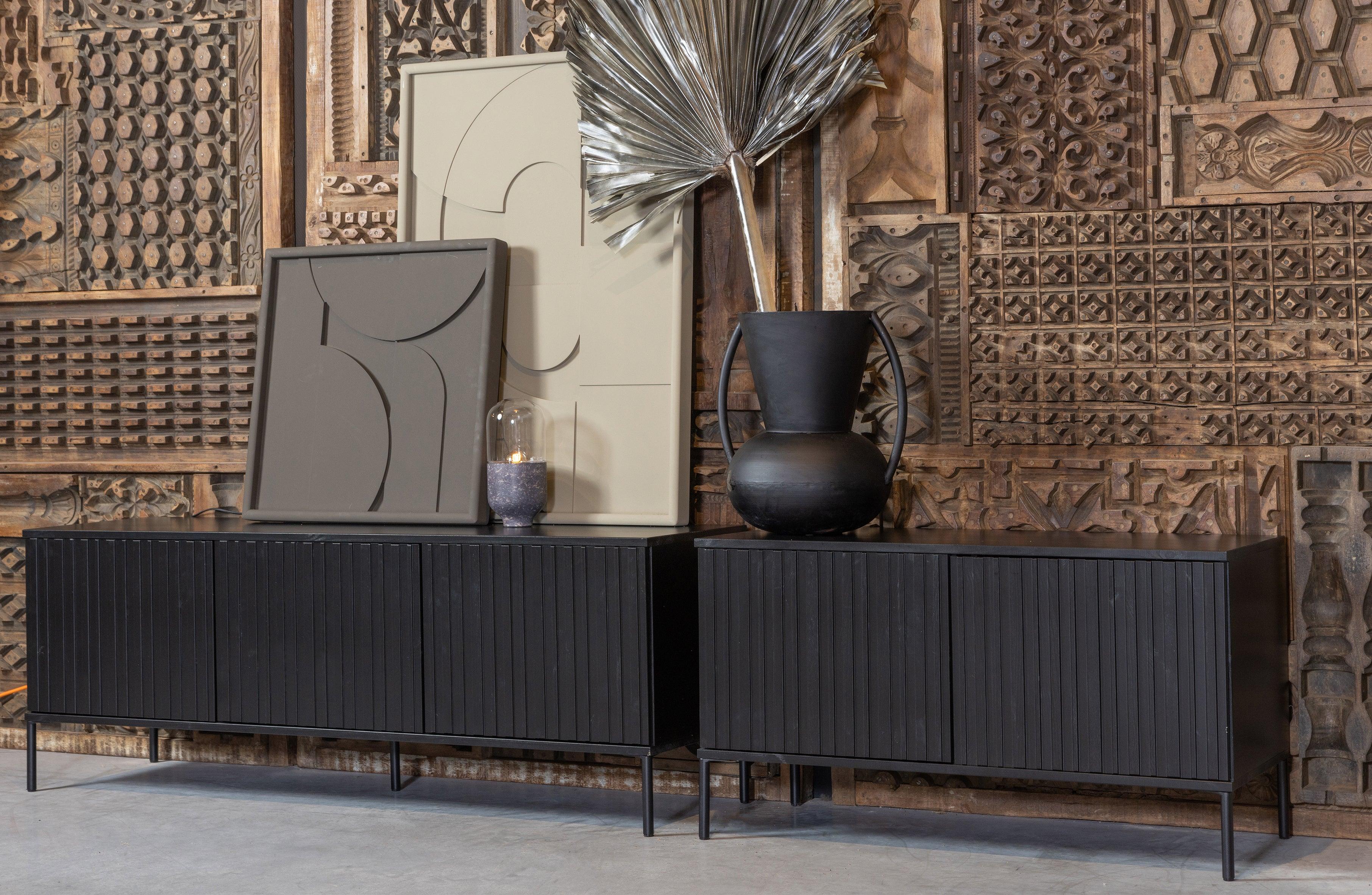 Szafka długa RTV GRAVURE czarne drewno sosnowe