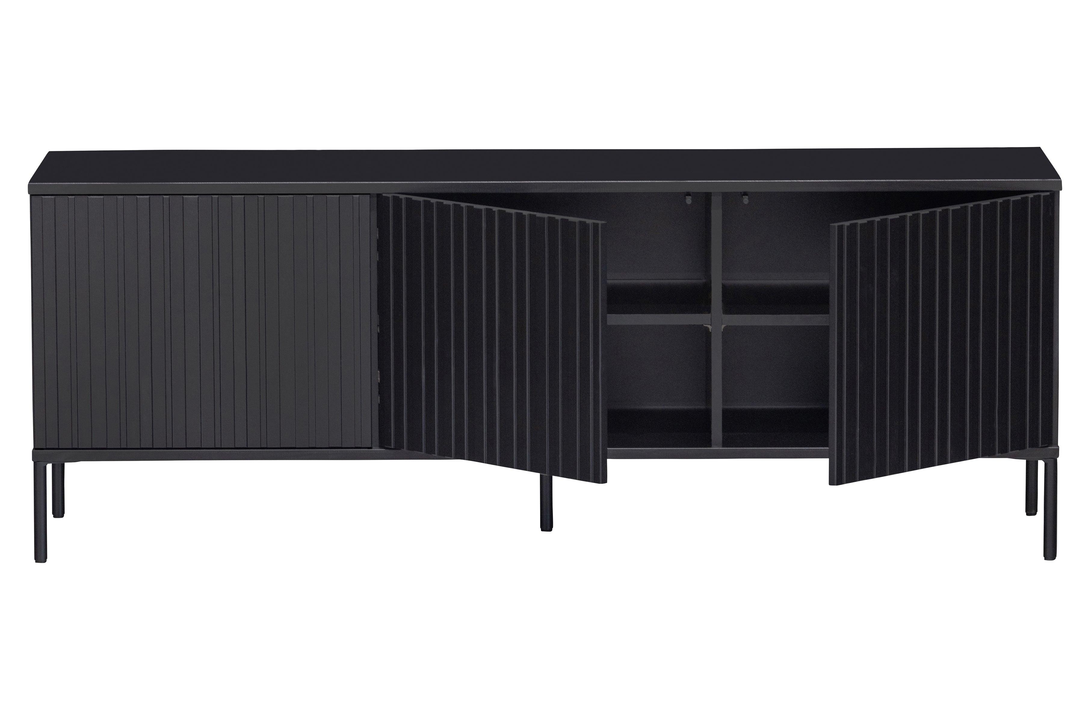Marzysz o funkcjonalnej szafce pod telewizor, która nie będzie jedynie ozdobą, ale również funkcjonalnym meblem? Jeśli tak, szafka RTV Gravure będzie idealnym wyborem. Eleganckie, choć niewymuszone wykończenie w czarnym kolorze oraz doskonale zaplanowany układ półek sprawia, że drewniana szafka RTV Gravure stanowi idealne uzupełnienie niemal każdego wnętrza. Półki zapewniają dodatkową przestrzeń na przechowywanie, natomiast klasyczne, minimalistyczne fronty zapewniają szafce Gravure doskonały wygląd.