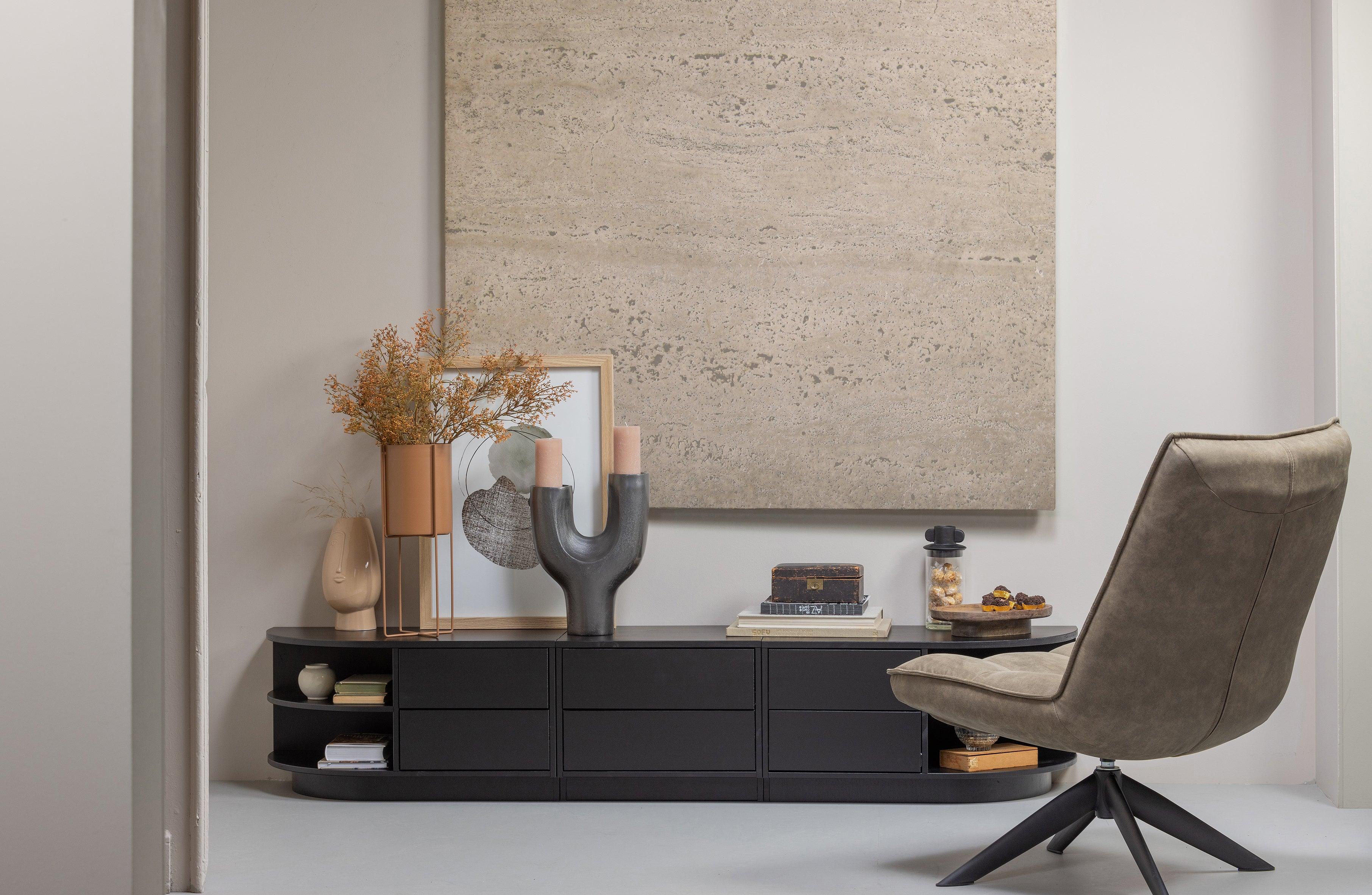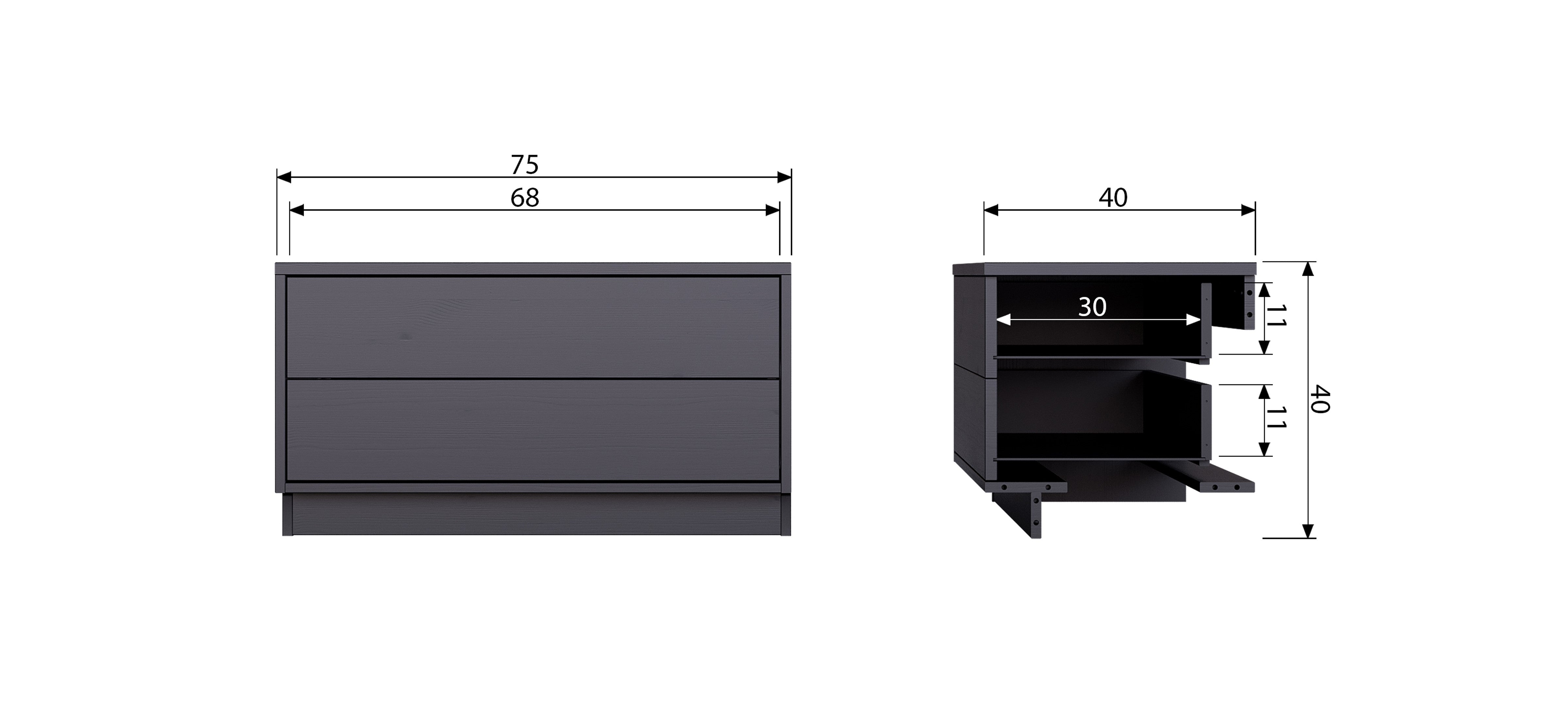Szafka Fianca został wykonany z certyfikowanego drewna sosnowego i wykończony w głębokiej czerni. Ten unikalny mebel łączy klasykę i nowoczesność, tworząc stylową całość, jednocześnie oferując dużo miejsca na przechowywanie najpiękniejszych akcesoriów.
